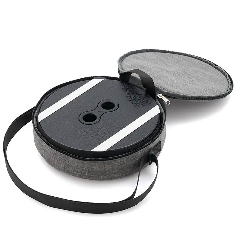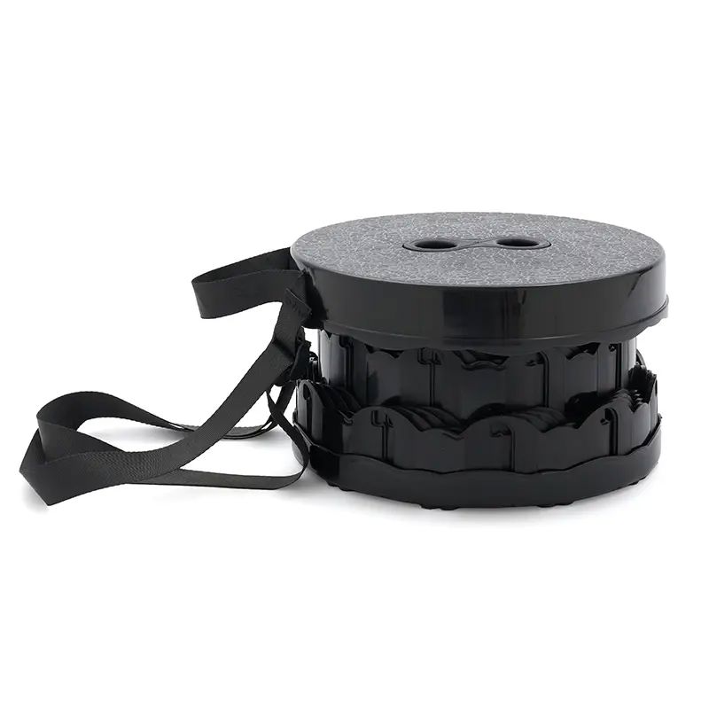 Banco plegable con diseño tipo acordeón. Esta fabricado en polipropileno (PP). Cuenta con una estructura plegable tipo acordeón, tapa plana sin diseño y una bolsa de transporte de tela Oxford 600D color gris. Es ideal para llevar en salidas al aire libre, camping o utilizar como asiento portátil en cualquier ocasión gracias a su diseño liviano y resistente.
