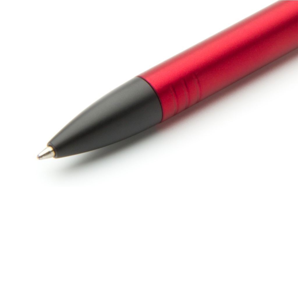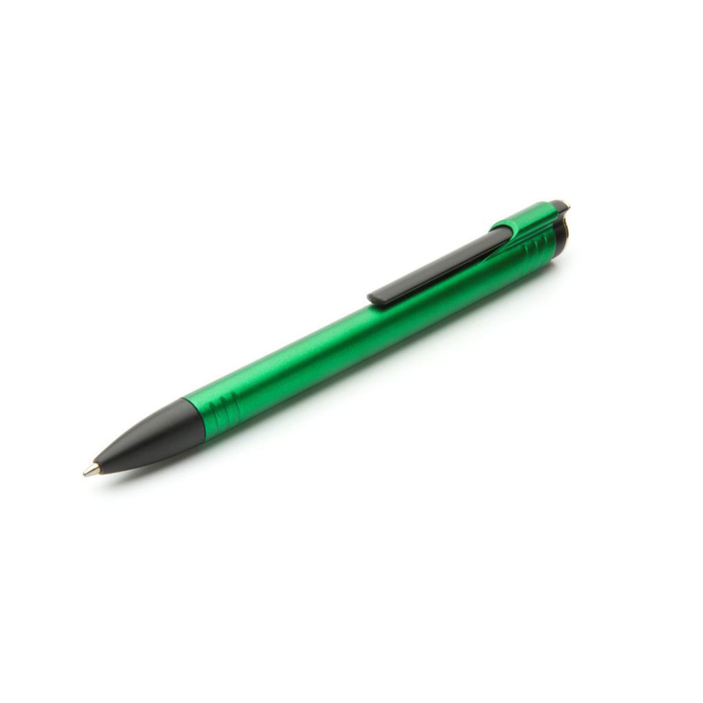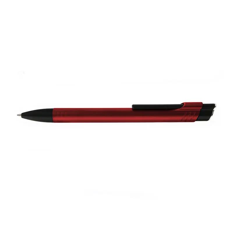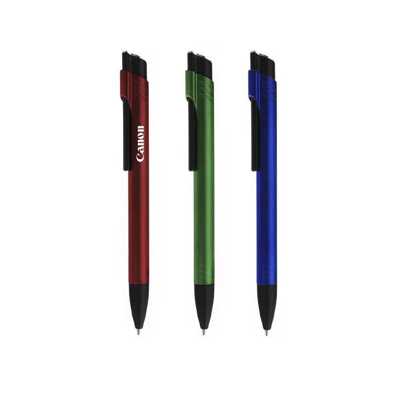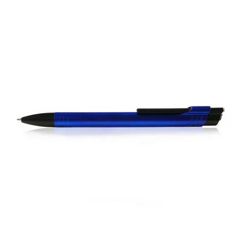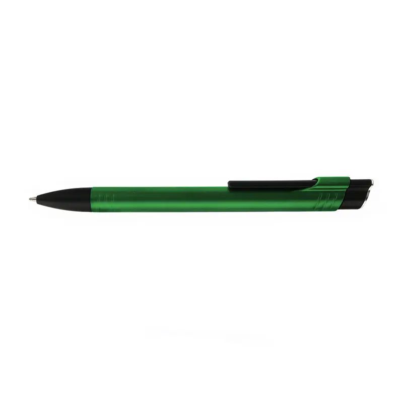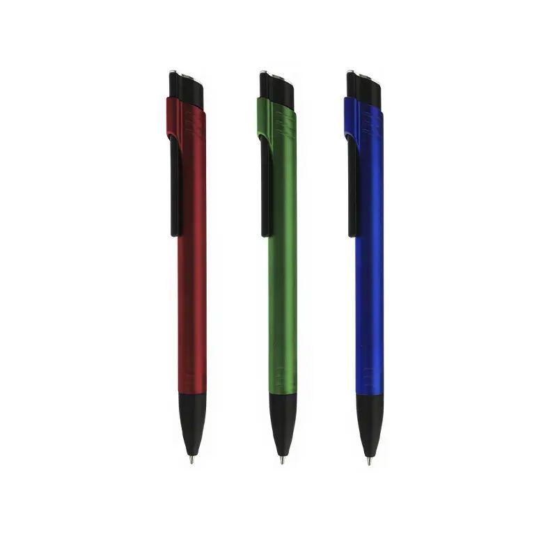 Bolígrafo plástico retráctil con cuerpo sólido y tinta negra.