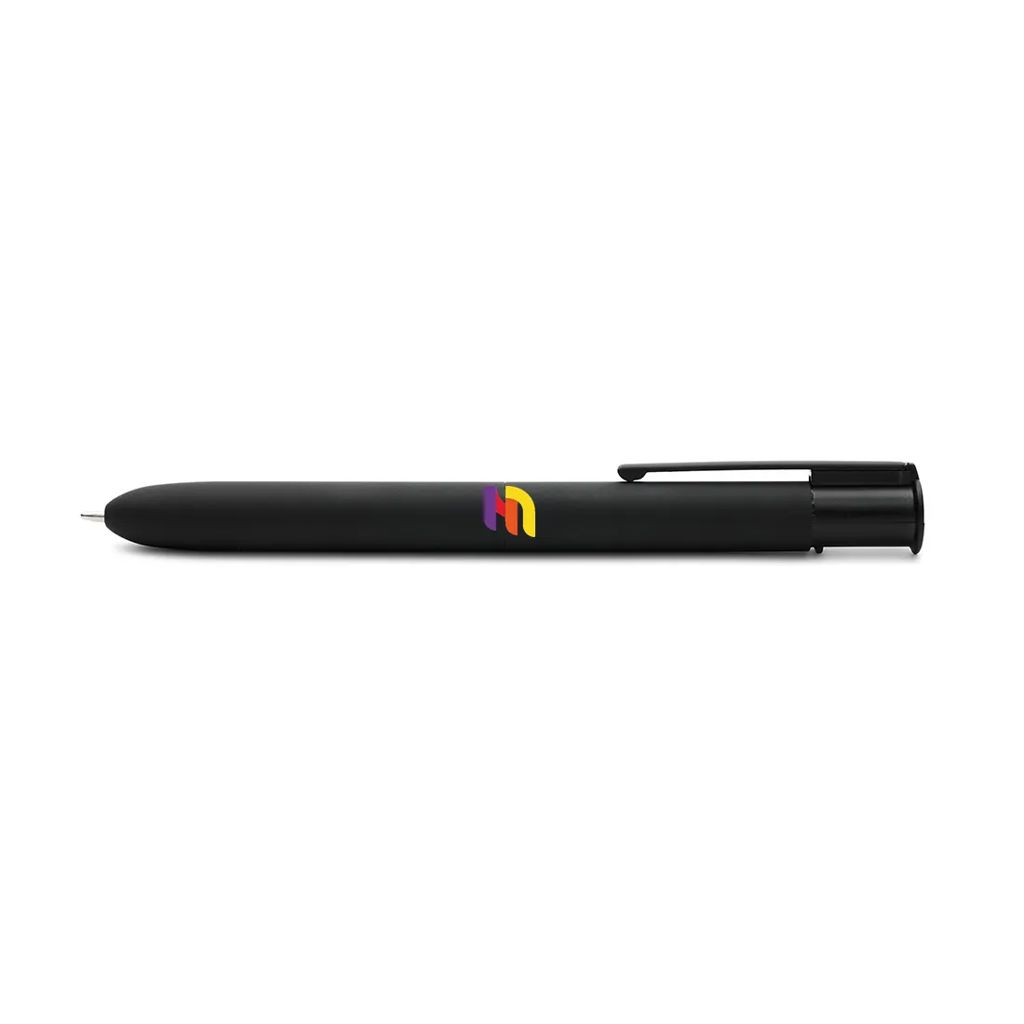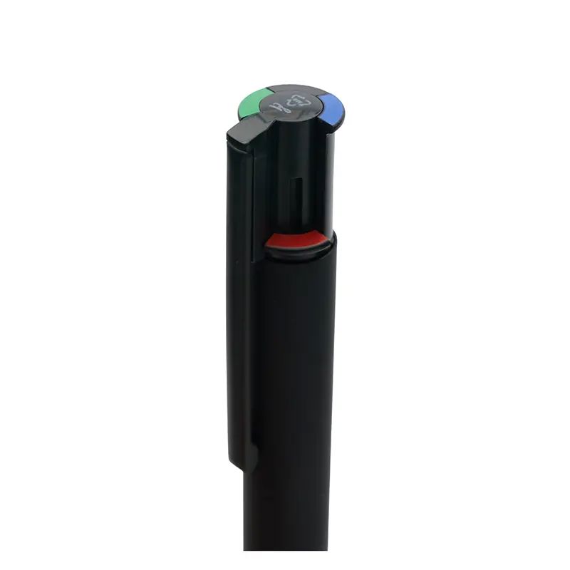 Bolígrafo retráctil de 4 colores fabricado en aluminio reciclado. Hecho con cuerpo de aluminio reciclado, cuenta con un barril ancho para mayor comodidad al escribir, clip plástico resistente y recargas de tinta alemana en negro, azul, rojo y verde que garantizan una escritura fluida y duradera. Es ideal para estudiantes, profesionales y oficinas que buscan un instrumento de escritura práctico, elegante y sostenible.