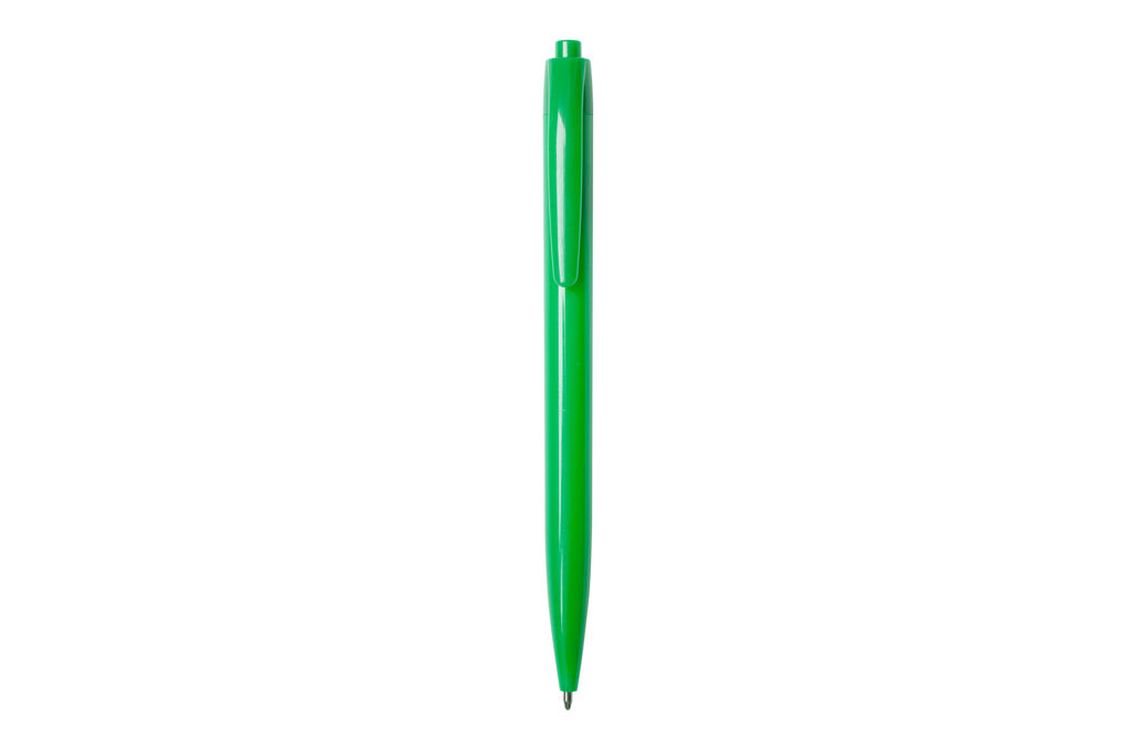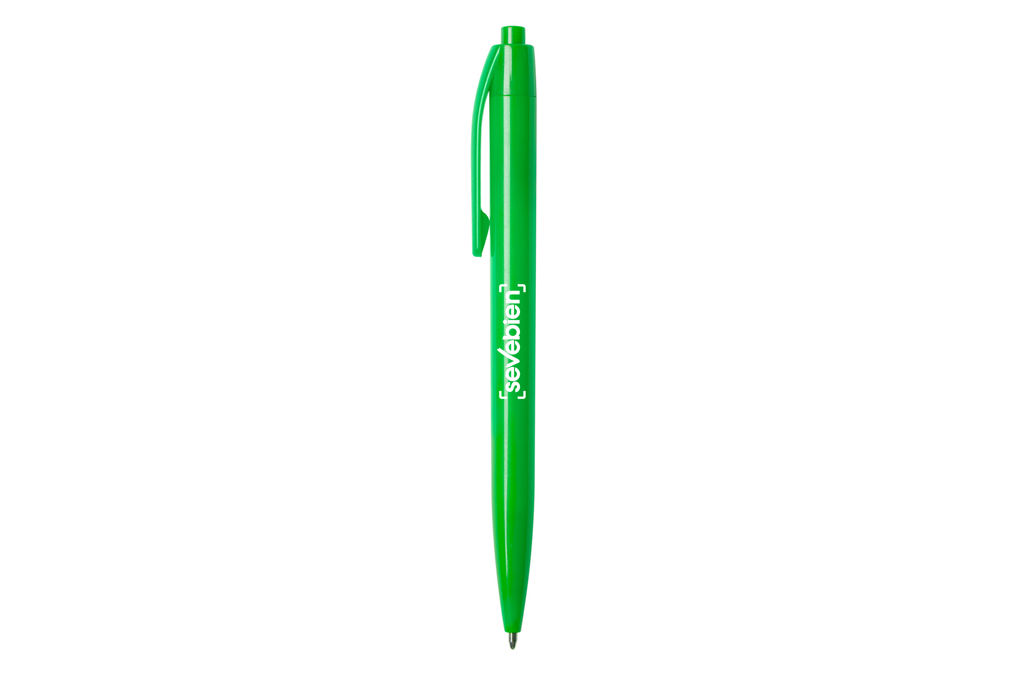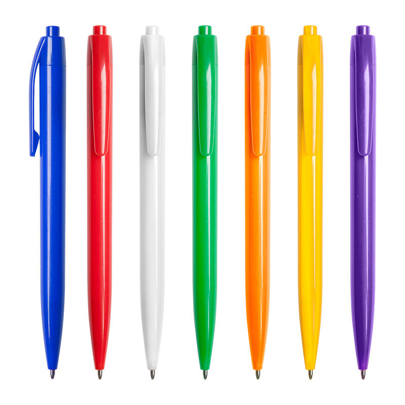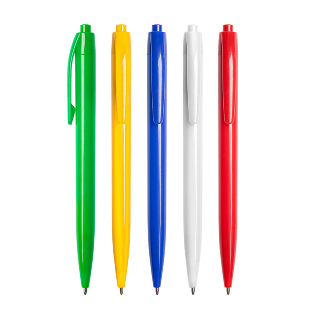 Plástico. Bolígrafo con cuerpo plástico de color con pulsador. Tinta negra.