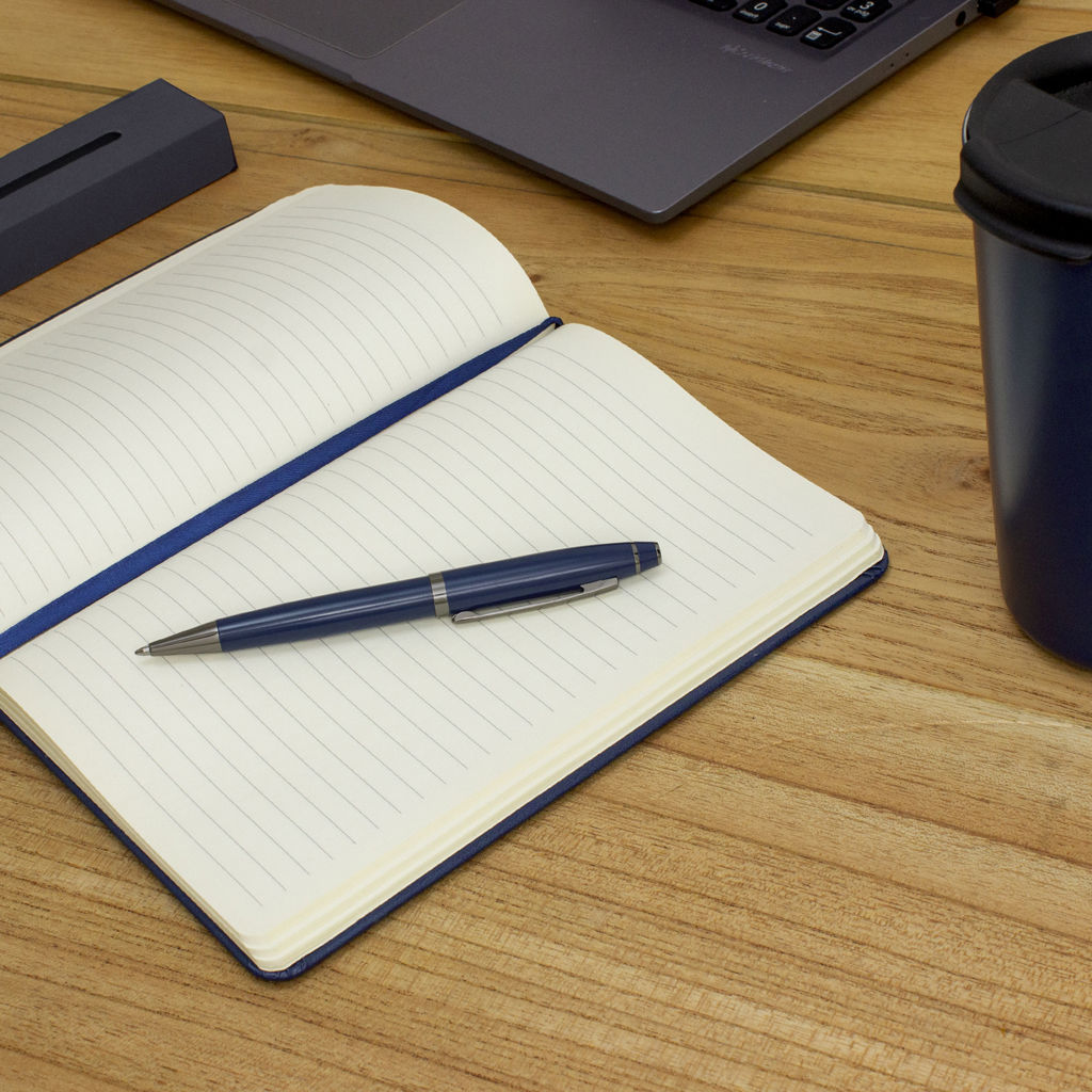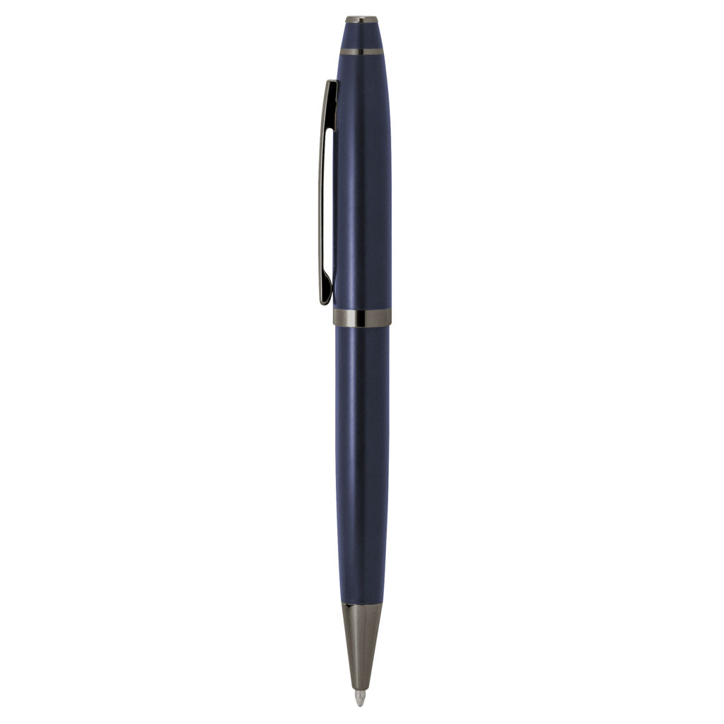Cada detalle comunica distinción.Bolígrafo con apertura giratoria. Cuerpo de acero inoxidable de color con acabado mate. Clip, anillos y punteras metálicos color gun. Destape ocre claro. Recarga Parker Jumbo metálico. Medidas: 13,5 cm.