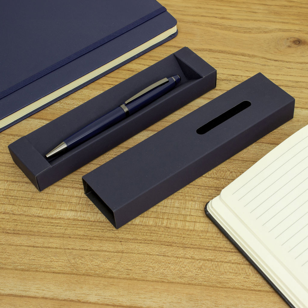 Presentación: en caja de regalo con ventana y acabado engomado del color del bolígrafo.