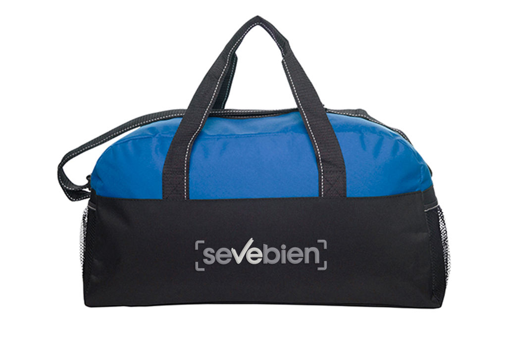 51 x 18,5 x 25 cm. Capacidad 23 litros aprox. Poliéster 300D. Bolso con bolsillos de redes en los laterales. Dos manijas, correa ajustable y cierre principal con vivos en color blanco.