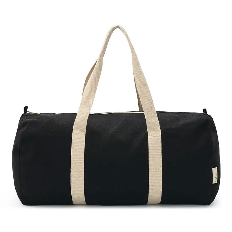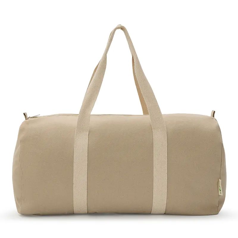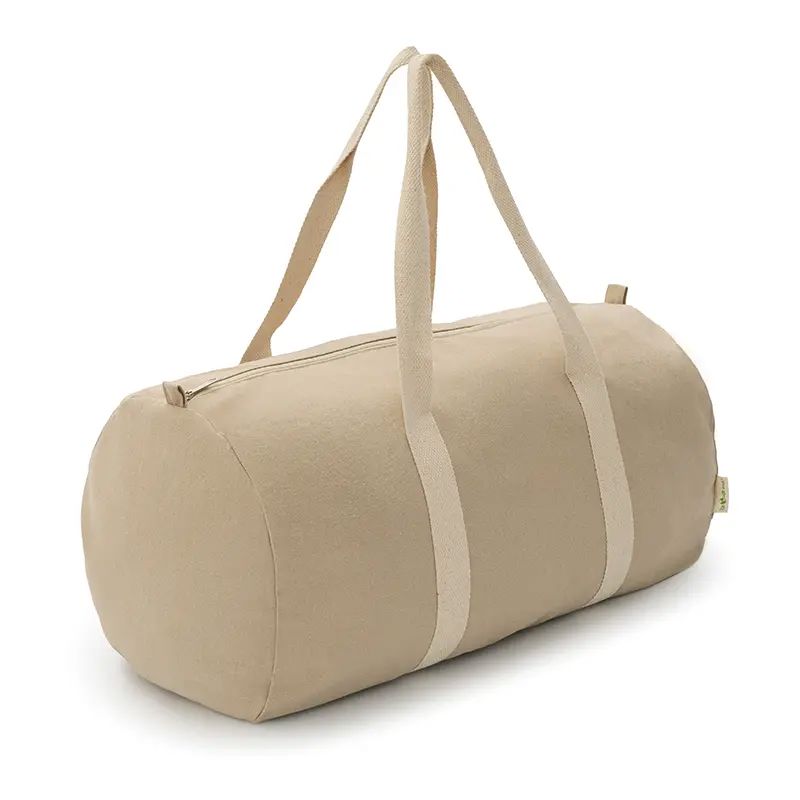 Bolso amplio de algodón reciclado. Cuenta con compartimento espacioso, asas resistentes y diseño de base ancha. Es ideal para escapadas de fin de semana, ir al gimnasio o como bolso versátil para el día a día.