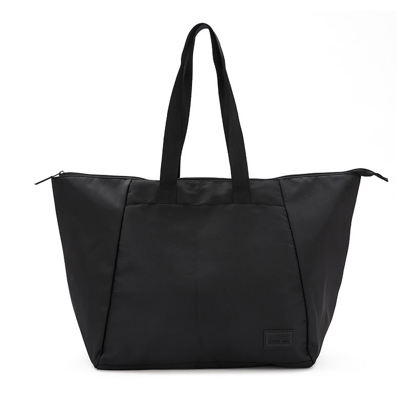Bolso tote confeccionado en Nylon Jacquard con cierre en tono y cabezal negro. Compartimiento principal de gran apertura con cierre. Cuenta con un bolsillo trasero sin cierre. Incluye un neceser, confeccionado también en jacquard nylon, con cierres en tono. Correas para hombros confeccionadas en Polyester y Goma. Ideal para viajes y madres. Dimensiones: 36 x 58 x 22 cm (Alto x Longitud x Ancho). Capacidad: 5L. Cardon.