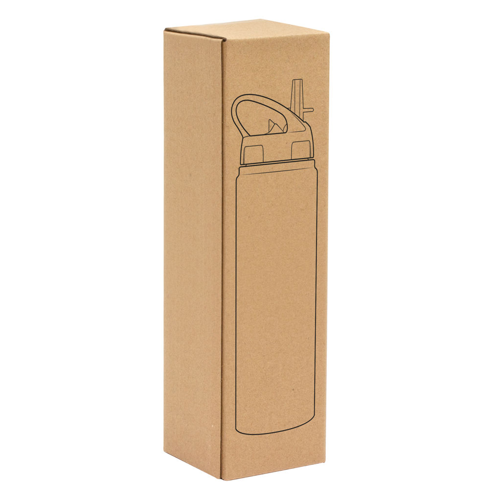 Clásica e Ideal para cualquier ocasión.Botella de aluminio con manija de agarre en la tapa, sorbete plástico y boquilla rebatible. Tapa a rosca de plástico. Medidas: Ø 7 x 25 cm.