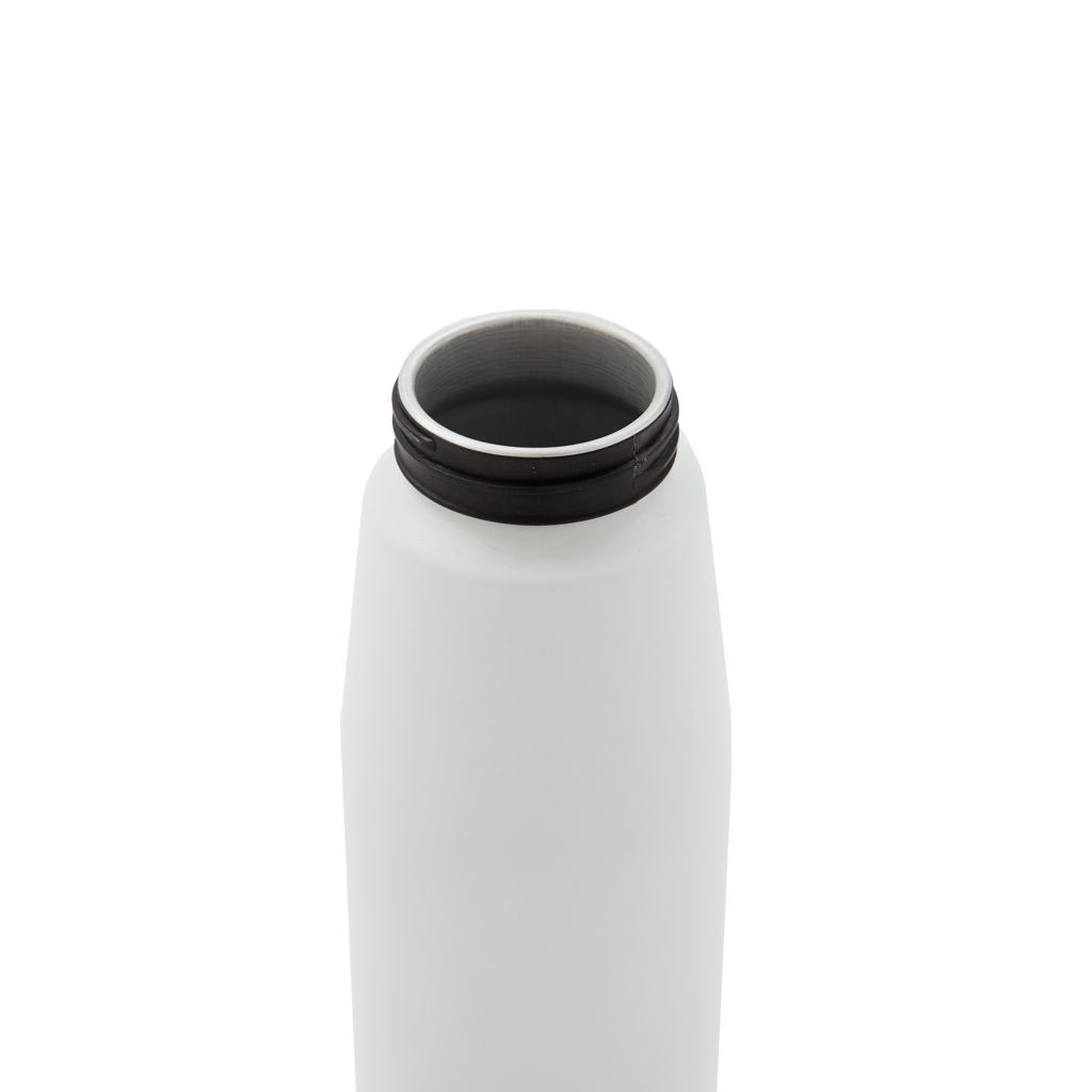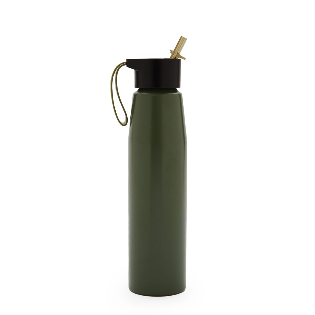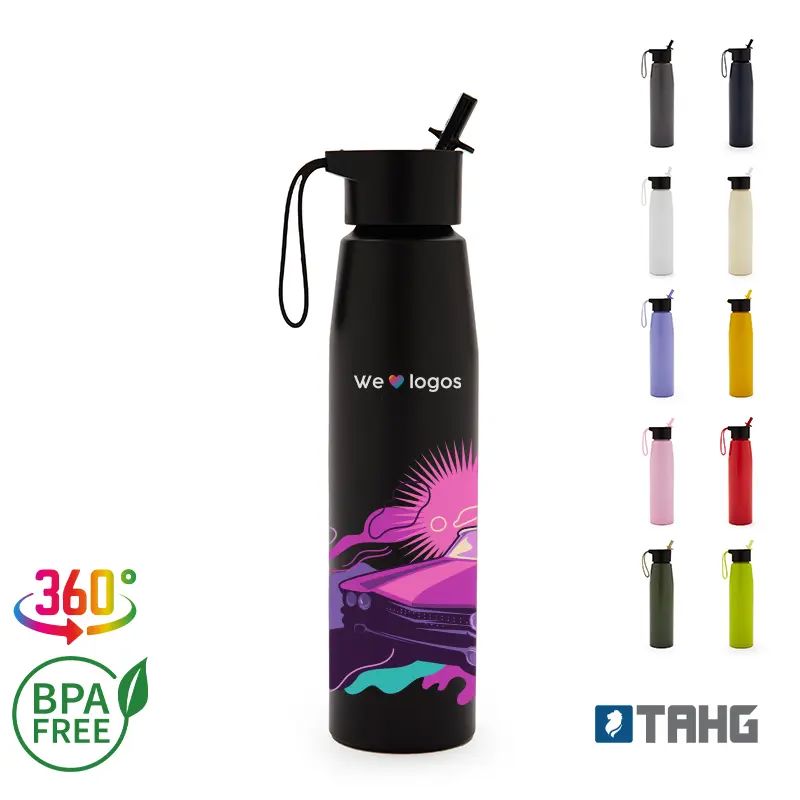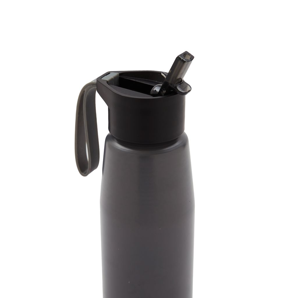 Botella de aluminio con tapa de PP negra a rosca con pico de PS y sorbete PE. Cuenta con una correa de silicona a tono con el color elegido para facilitar el agarre. Capacidad de 700 ml. Ideal para tus actividades deportivas y al aire libre. Con impacto positivo en el medio ambiente, esta botella reutilizable te ayuda a reducir el consumo de plástico de un solo uso. Producto libre de BPA. Tahg
