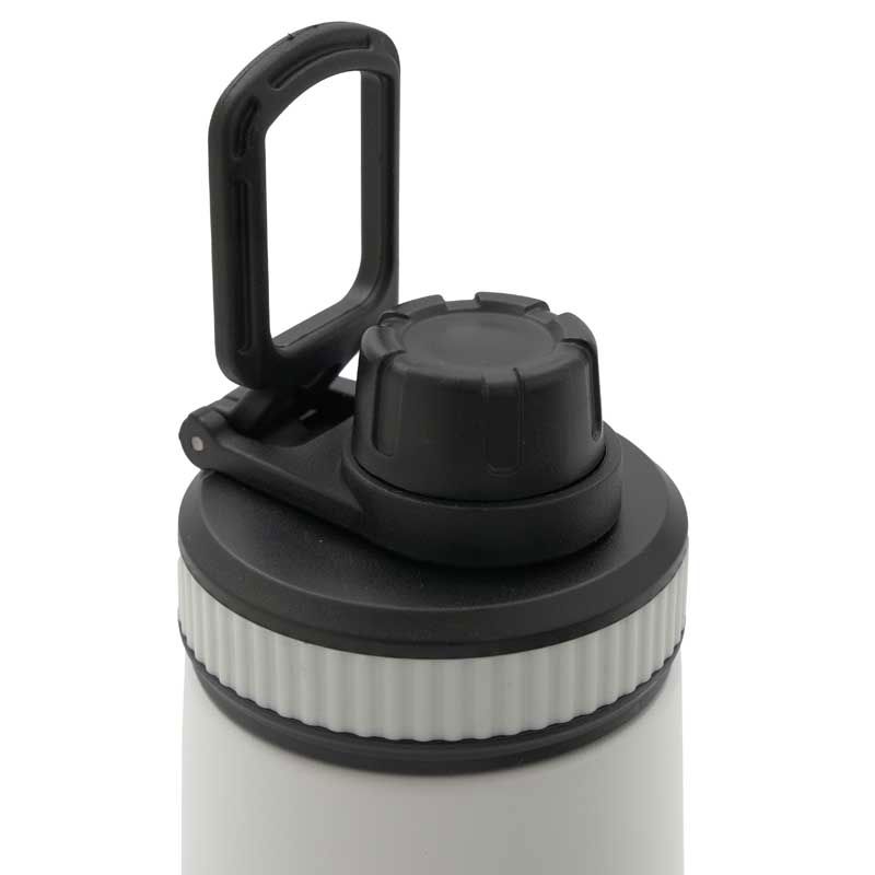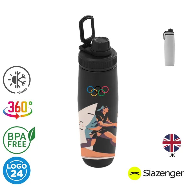 Botella deportiva reutilizable de 650 ml fabricada en acero inoxidable. Su doble pared aislante mantiene las bebidas frías por hasta 24 horas y calientes por hasta 12 horas, permitiéndote disfrutar tus bebidas favoritas en cualquier momento y lugar. Cuenta con tapa con pico a rosa, confeccionada en PP, y silicona para evitar derrames de líquido.
