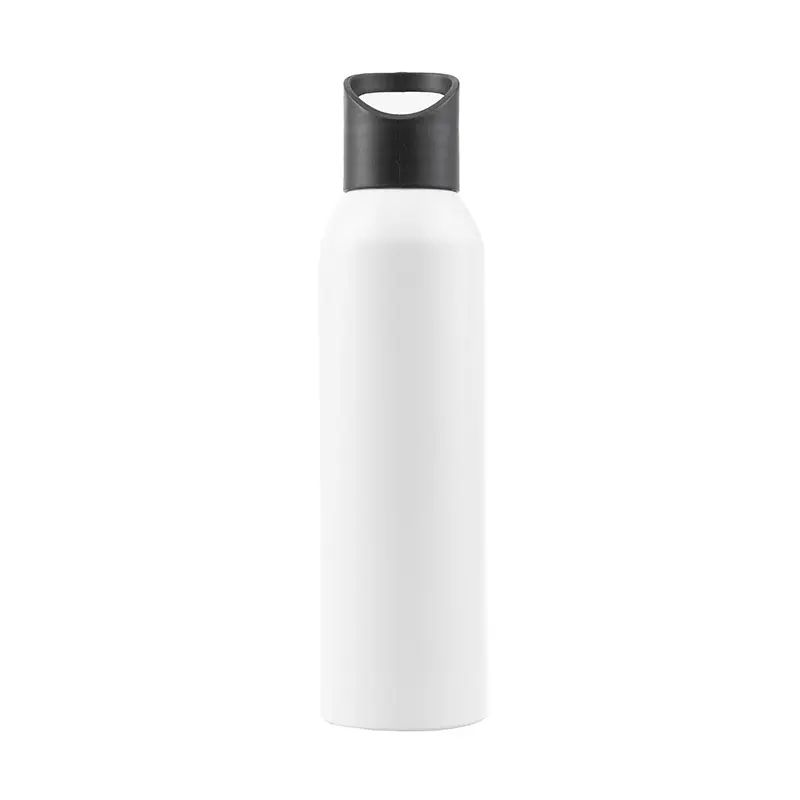 Sport Bottle reutilizable de aluminio con tapa rosca de PP y silicona. Cuenta con una tapa con agarre para facilitar su transporte. Producto libre de BPA. Producto aprobado por el I.N.A.L. para el contacto con alimentos. Medidas: 27 cm x 6,6 cm. Capacidad: 650 ml. Tahg.