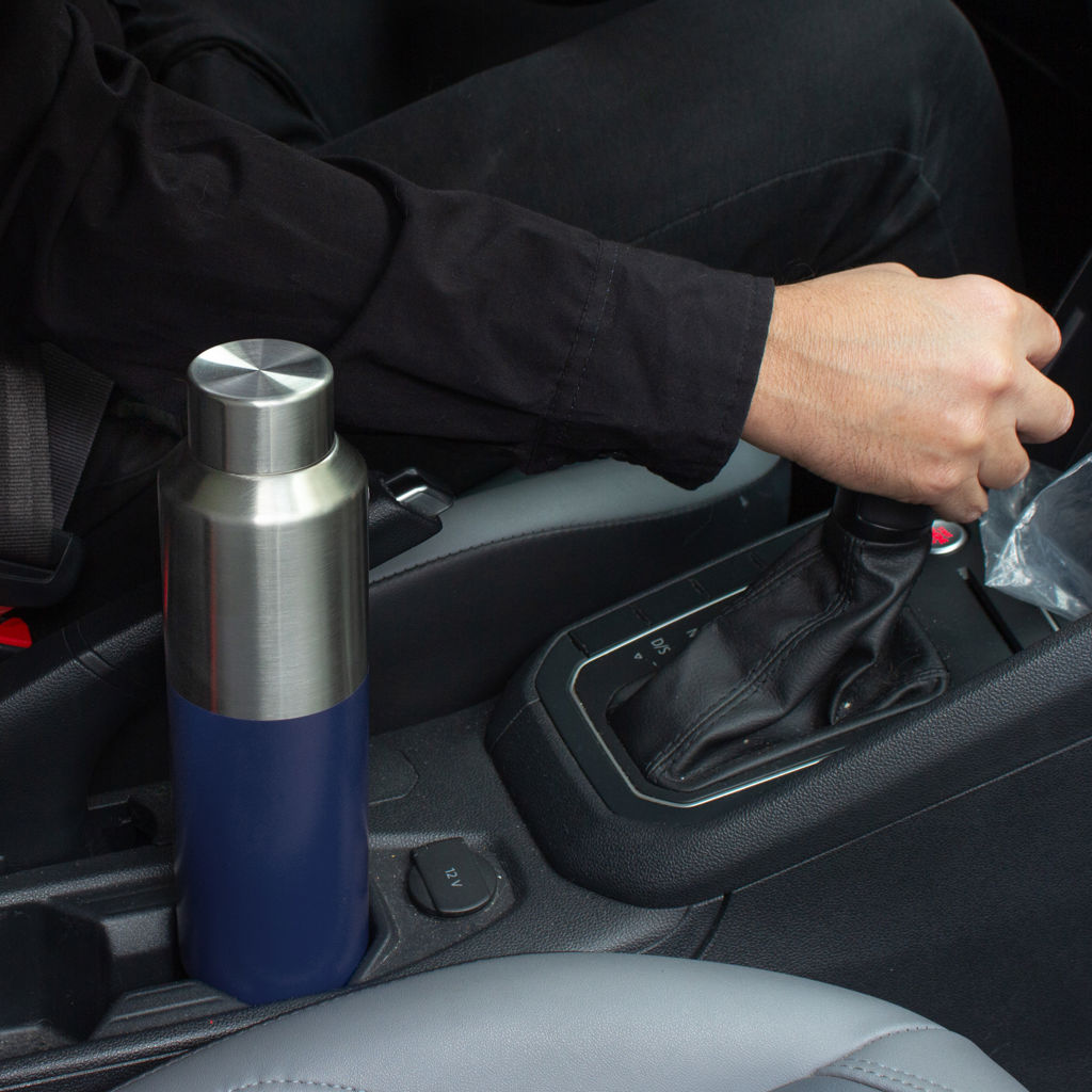 Aislamiento Superior para Bebidas Calientes y Frías.Botella doble pared, sellada al vacío. Interior de acero 304 y exterior de acero 201. Tapa a rosca de acero 201 con anillo de silicona. Pintura acabado mate en parte inferior. Mantiene hasta 8 hs la temperatura de las bebidas calientes y hasta 12 hs la de las bebidas frías.Medidas: Ø 7 cm x 24,5 cm.