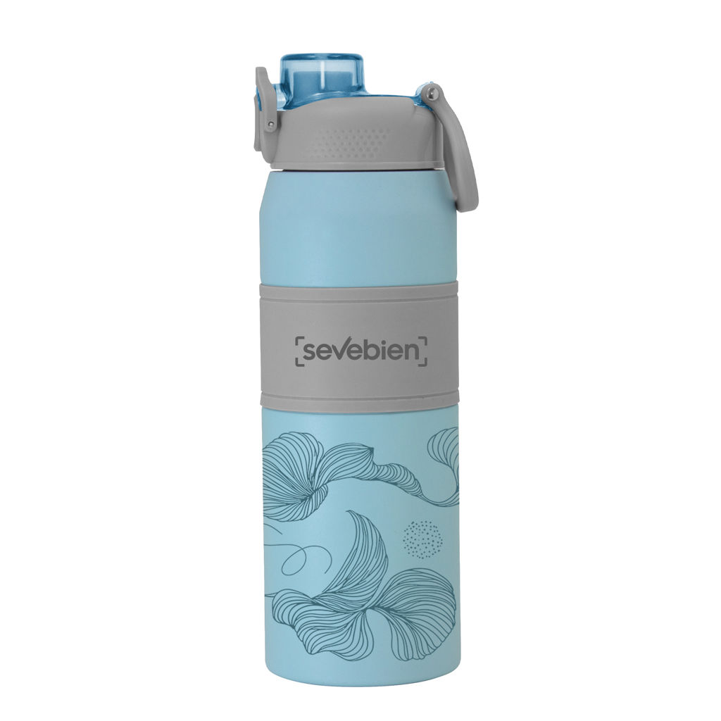 Hidratación a otro nivel.Botella deportiva con doble pared, sellada al vacío. Interior de acero 304 y exterior de acero 201. Pintura powder coat (pintura más duradera y resistente a la corrosión y el paso del tiempo). Tapa plástica a rosca en color gris con anillo de silicona y manija plástica para su agarre, combinada con tapa rebatible en colores translucidos a juego con el color de la botella. Boquilla con sorbete incluido. Grip de silicona color gris para mejor agarre. Mantiene hasta 8 hs la temperatura de las bebidas calientes y hasta 12 hs la de las bebidas frías.Medidas: Ø 8 cm x 25 cm.