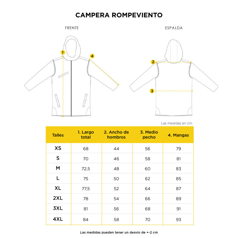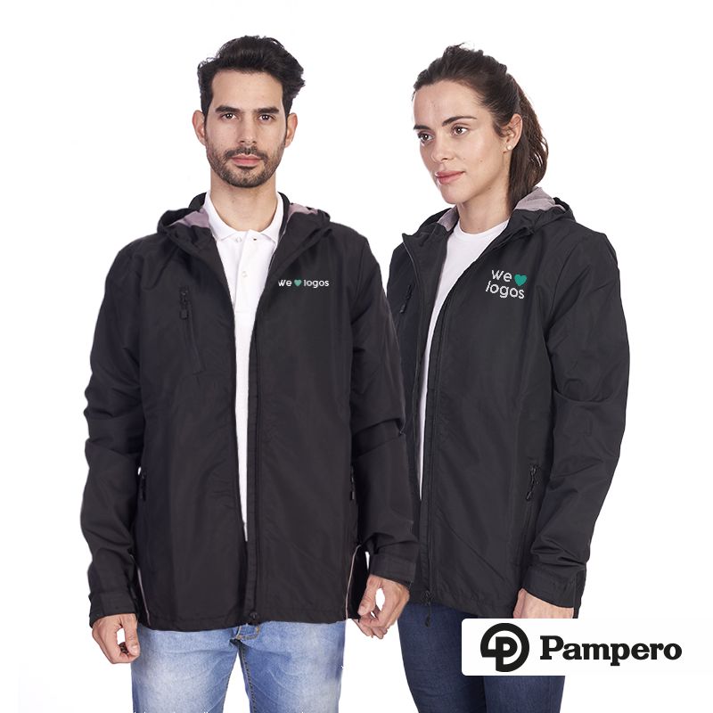 Campera fabricada en Taslan, una tela con recubrimiento impermeable y protección UV. El tejido interior es una malla 100% polyester que permite la ventilación de la prenda. Posee tres Bolsillos con cierre, dos laterales inferiores y uno lateral derecho superior y puños con regulación por velcro. En el extremo superior del cierre, posee una solapa cobertora. Regulación interna en ruedo, por cordón elástico y tanca. Posee capucha con 2 puntos de ajuste y detalles gris reflex.
