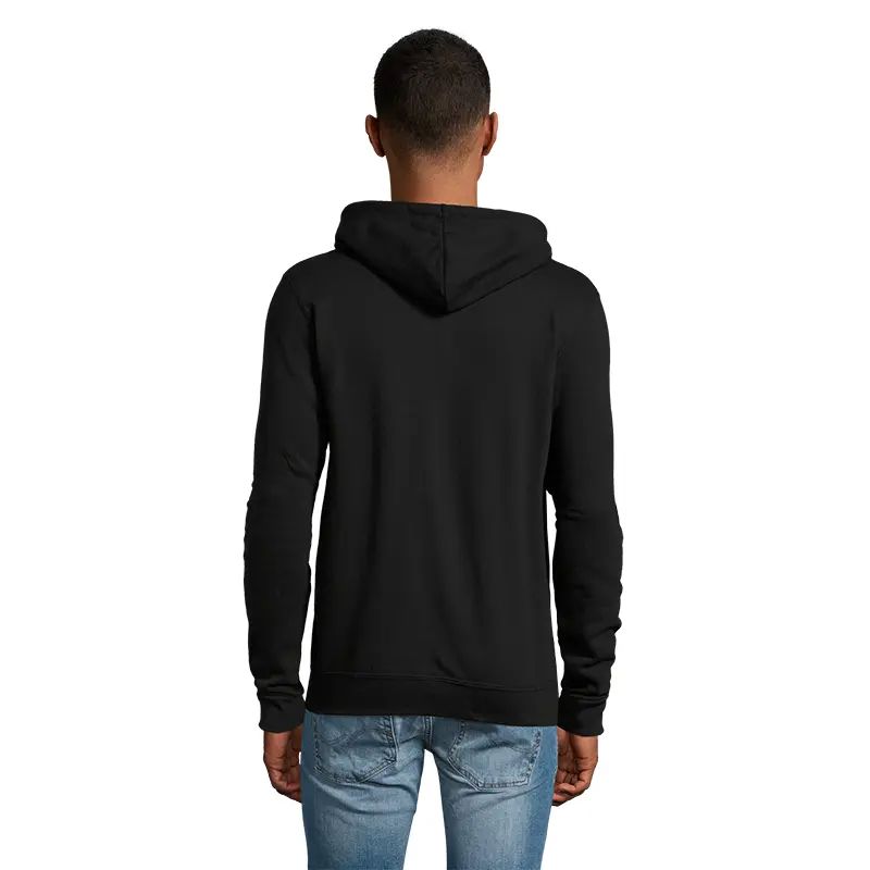 Campera de frisa 50% algodón y 50% poliéster de 260g con cierre y capucha unisex. CERTIFICACIÓN: PETA-Approved Vegan