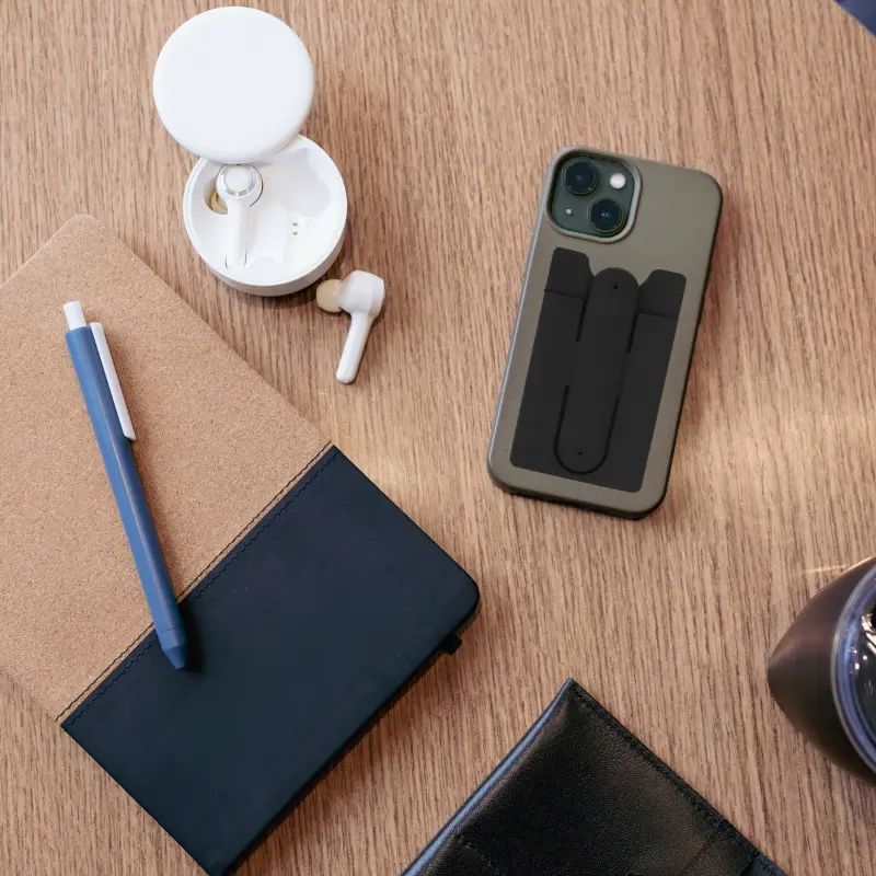 Protector de tarjetas sube o credenciales de silicona. Tiene una cinta adhesiva en la parte posterior que le permite adherirse a cualquier superficie lisa. Cuenta con una soporte adaptable como apoyo. Colores disponibles: blanco, negro y gris. Tahg.