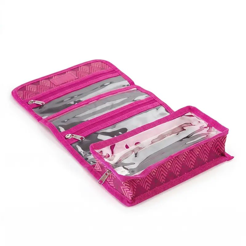 Cartuchera con 4 compartimentos interiores, de los cuales 3 tienen cierre de Nylon 230 D. Medidas plegada: 22,0 x 13,5 cm. Medidas desplegada: 22,0 x 31,0 cm. Zecat