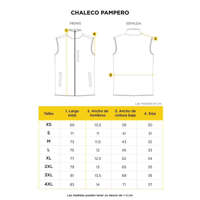 Chaleco fabricado en Micropolar de alta calidad, la tela posee un tratamiento antipilling en ambas caras, externa e interna que mantiene por más tiempo el aspecto original de la prenda, evitando la formacion de imperfecciones. Doble anti pilling. 100% Polyester 220 gr/m2. Cuenta con tres Bolsillos con cierre, dos laterales inferiores y uno lateral derecho superior. Por su aspecto y diseño esta prenda resulta versátil tanto para su uso outdoor como su uso urbano. El chaleco posee cuello alzado que proporciona protección y comodidad. Cada cierre posee un tirador con el logo de Pampero y además cuenta con detalles en las terminaciones del exterior e interior. En el extremo superior del cierre, posee una solapa cobertora.