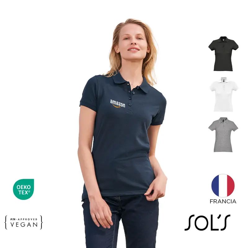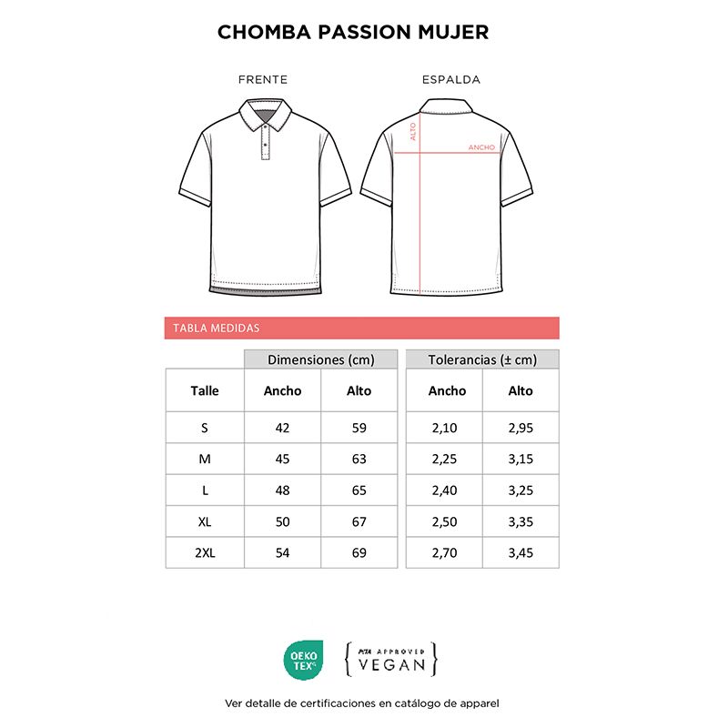 Chomba de pique con cuello de manga corta de 170g, 100% algodón peinado. Corte ajustado, cuello con tapa costura, aberturas laterales, cartera con 4 botones a tono y uno de repuesto