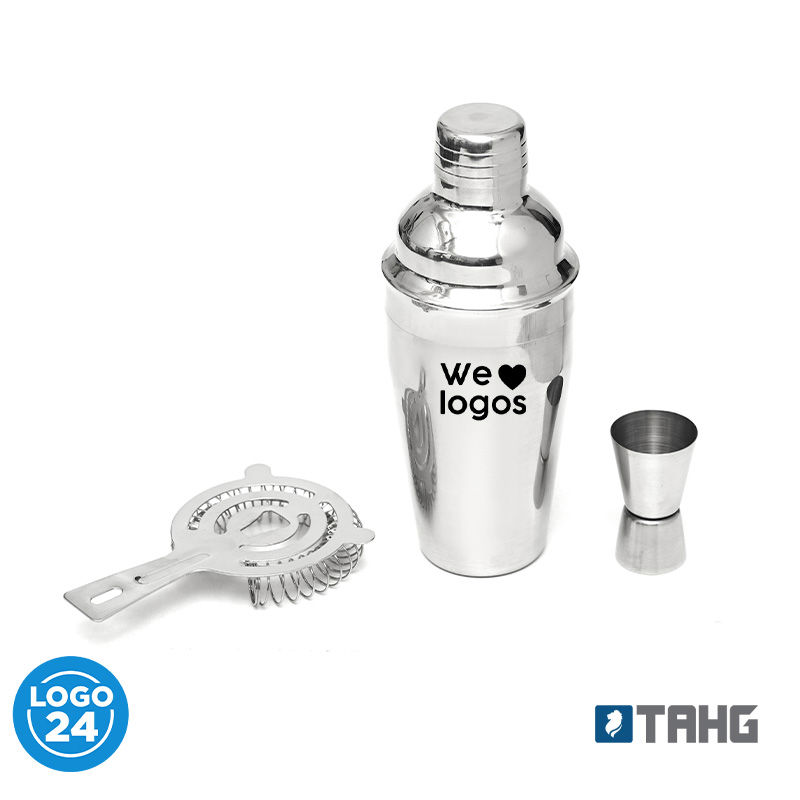 Set de Cocteleria, realizado en acero inoxidable. Medidas: 21,5 x 5,8 x 8,3 cm. Tahg.