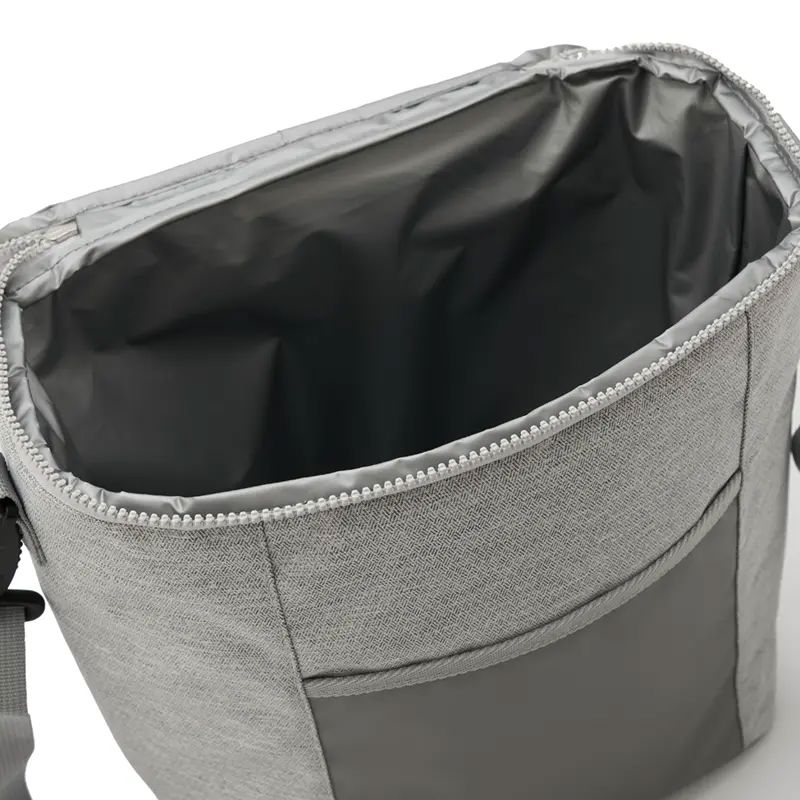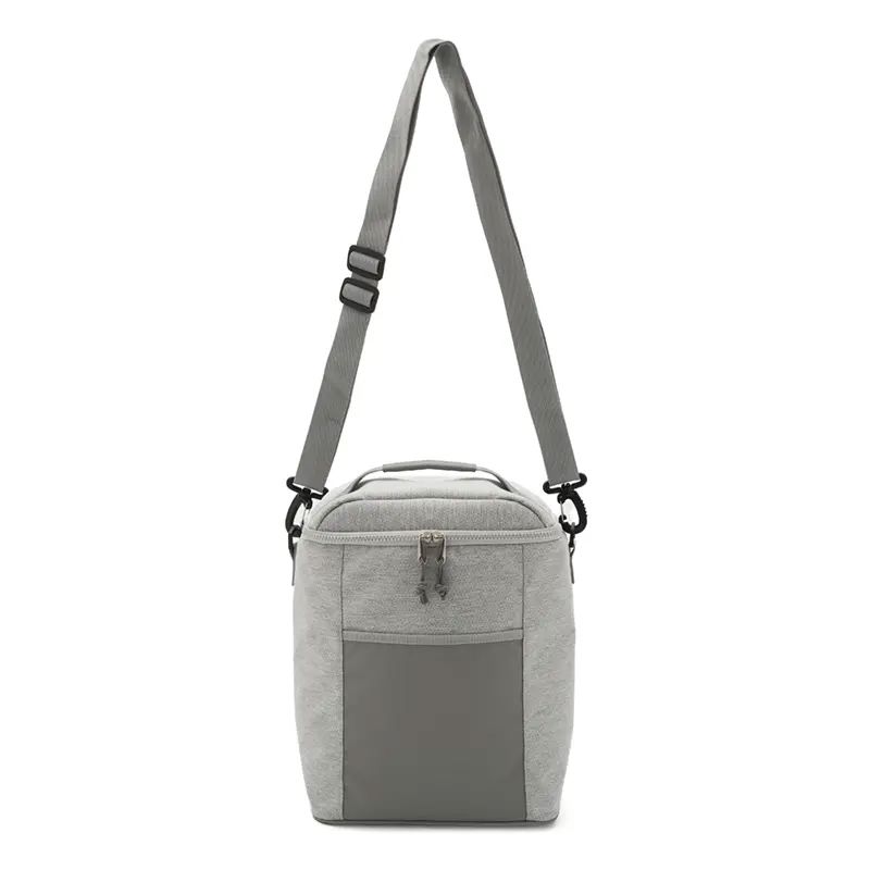 Cooler rectangular con bolsillo frontal y correa lateral. Confeccionado en poliéster, con interior de PEVA + PE. Cuenta con compartimiento principal con cierre, correa ajustable y manija superior. Es ideal para transportar alimentos y bebidas en salidas o uso diario.