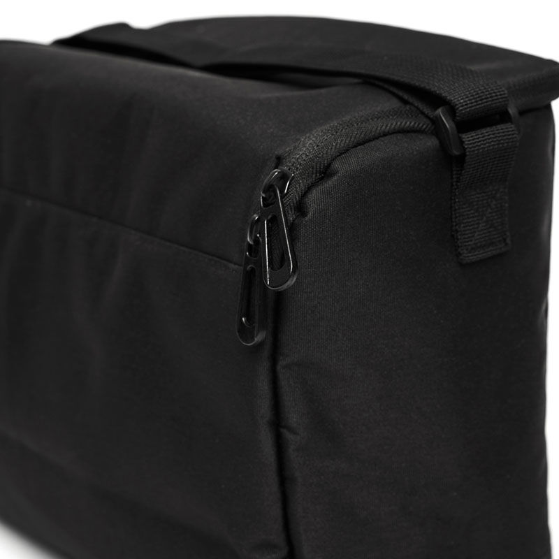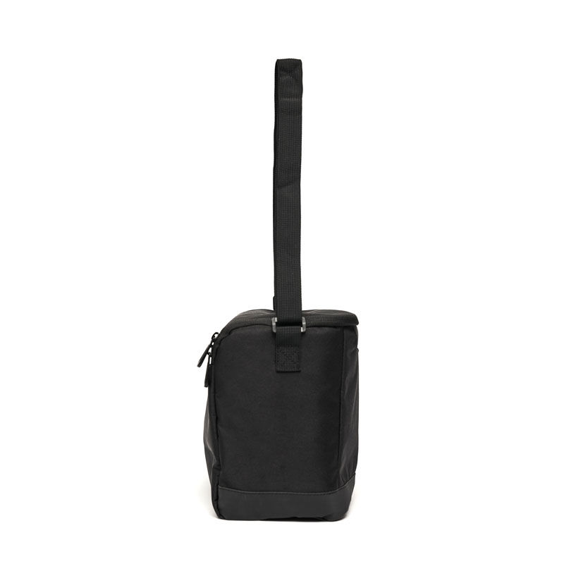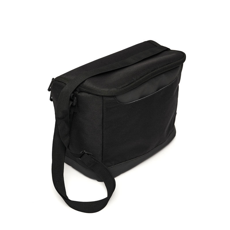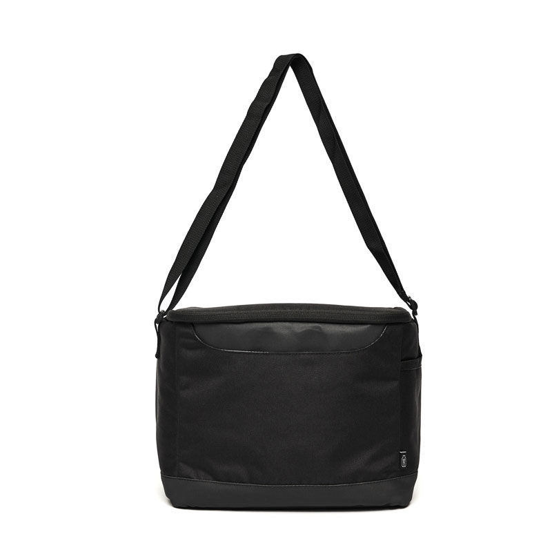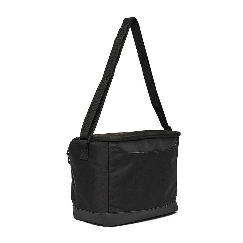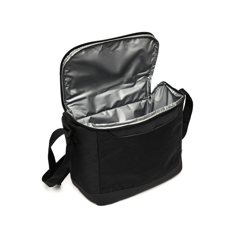 Cooler confeccionado en poliuretano, poliéster con revestimiento de PVC, espuma de polietileno 3mm utilizada como aislante y PEVA Lining, un revestimiento de polietileno vinil acetato, conocido por ser impermeable y usado en recubrimientos.