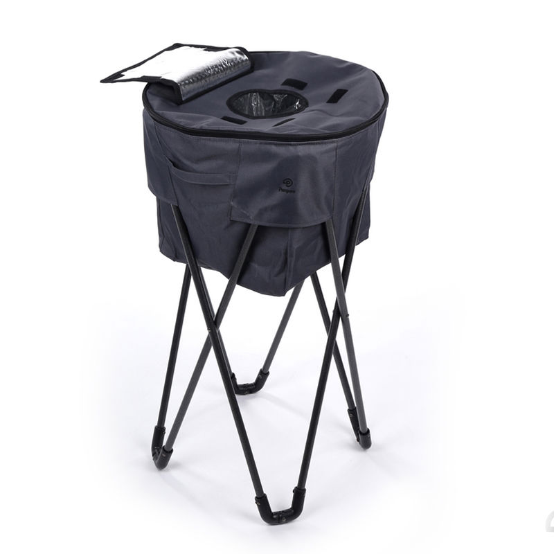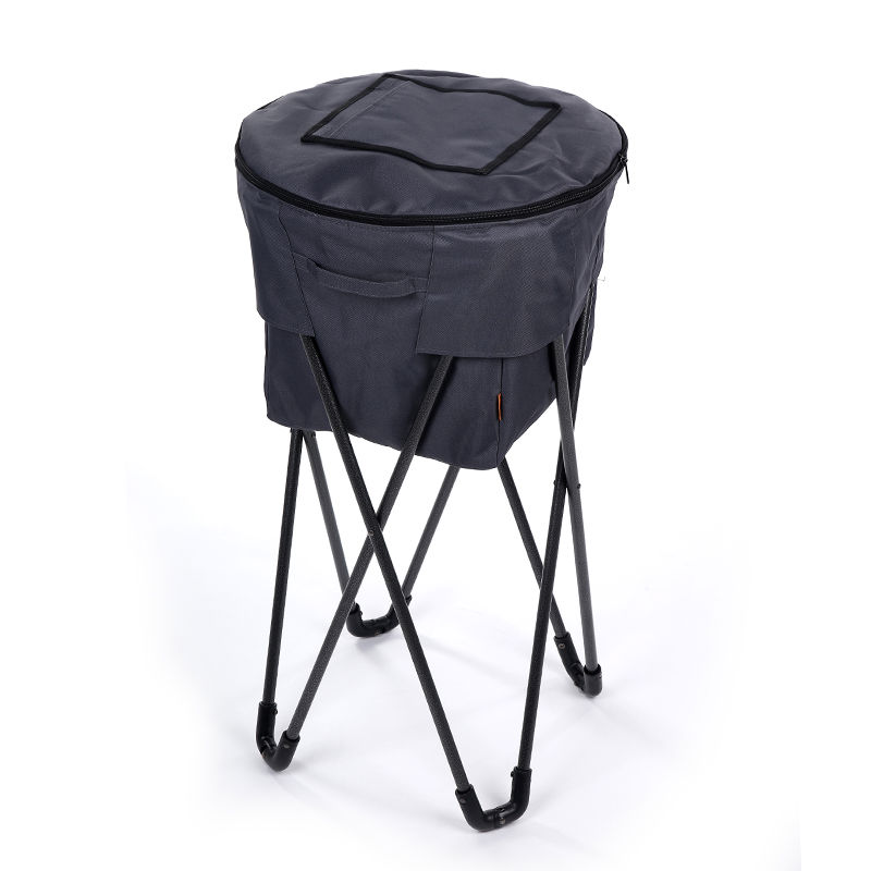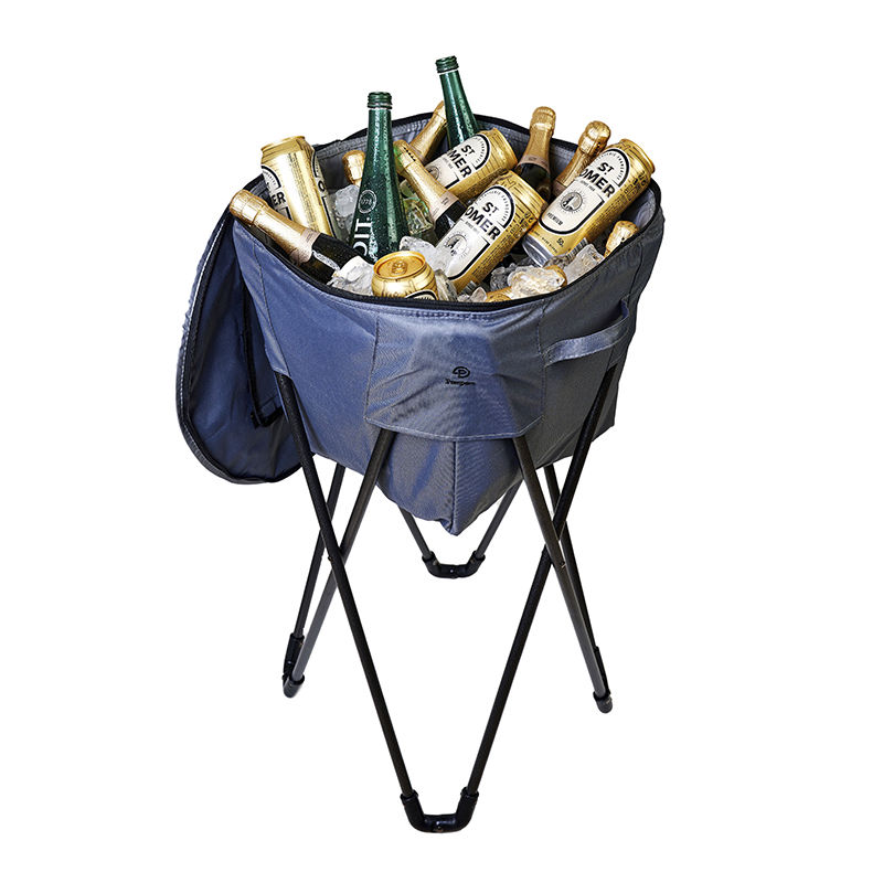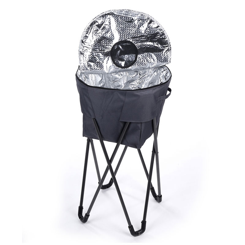 Interior de PEVA con soldadura hermética y estanca para evitar el derrame de líquido. Cuenta con manijas laterales y tapón inferior de desagote. Posibilidad de guardado del conjunto plegado. Completamente desmontable, permitiendo facilidad de limpieza. Patas con apoyo antideslizante. Compartimentos: Superior principal de gran apertura con cierre. Superior con menor apertura con velcro permitiendo retirar bebida sin perder el frio en su interior. Incluye funda de transporte.
