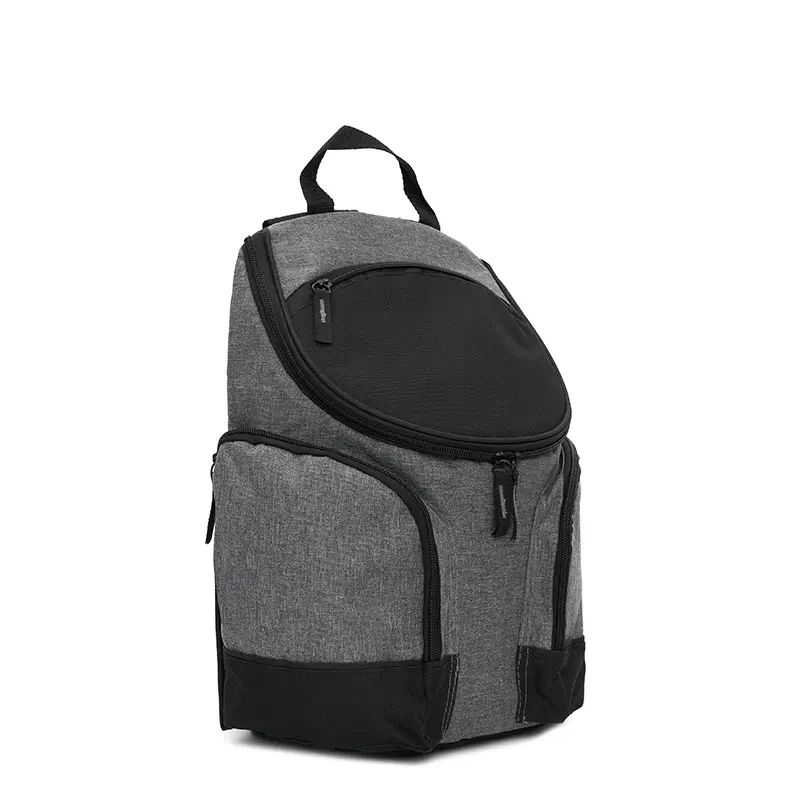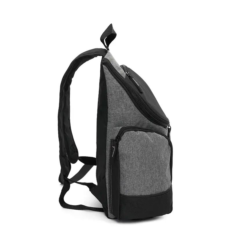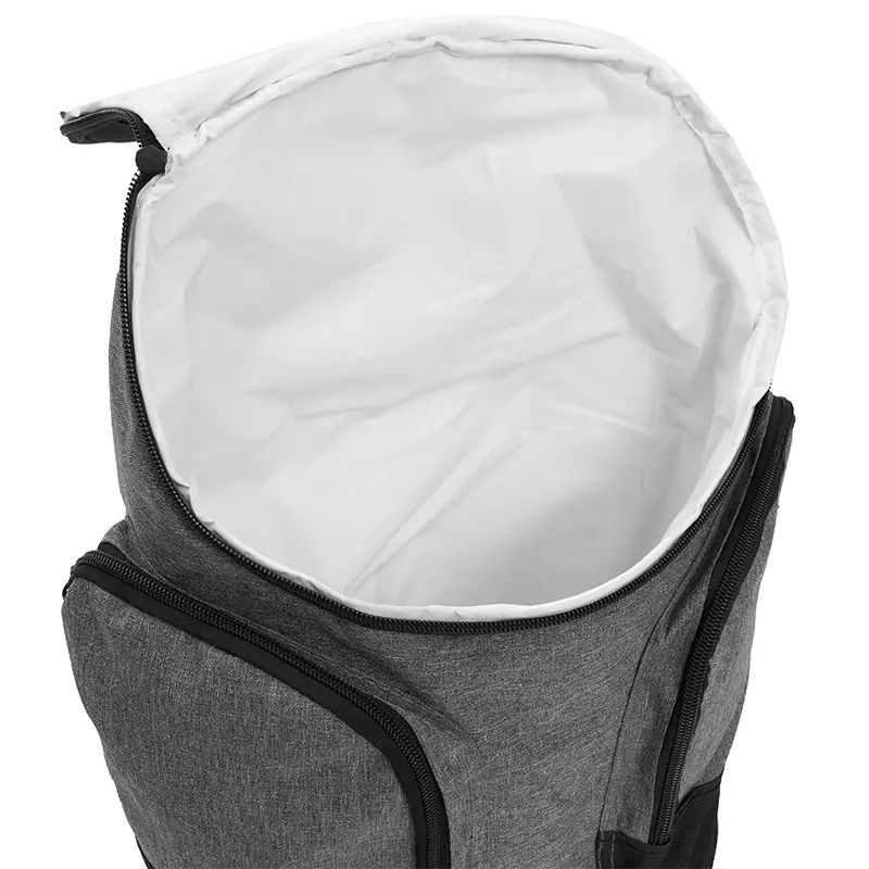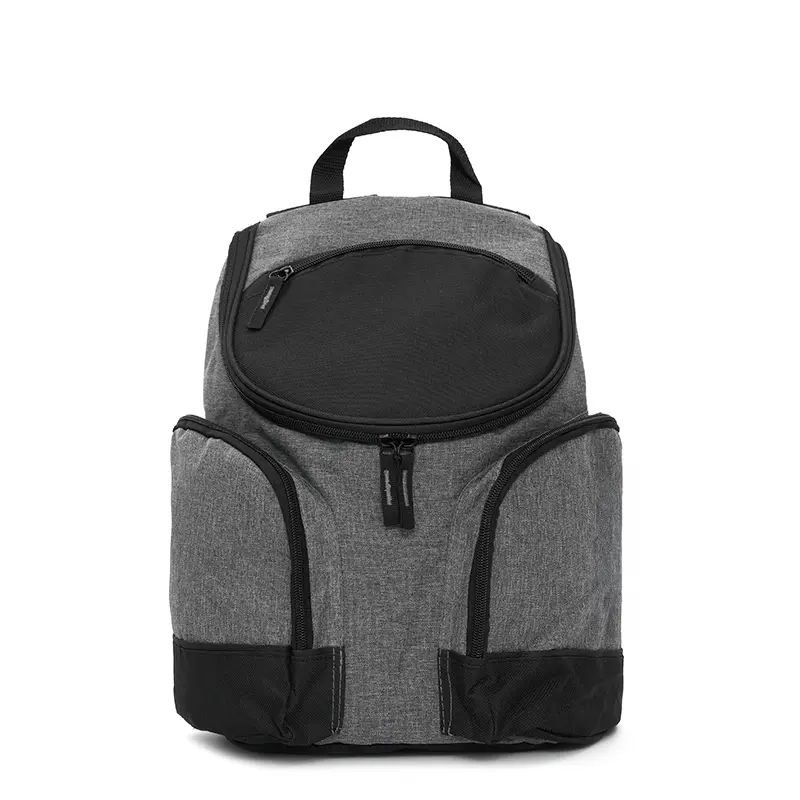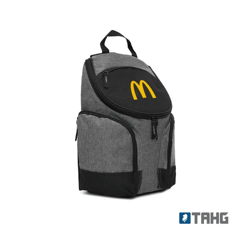 Mochila térmica con compartimientos laterales y bolsillo frontal. Está confeccionada en polycanvas 600D, con interior de aluminio. Cuenta con compartimiento principal térmico con cierre, dos bolsillos laterales y bolsillo frontal. Es ideal para transportar alimentos y bebidas en salidas, picnics o traslados diarios. Incluye correas acolchadas ajustables y manija superior.