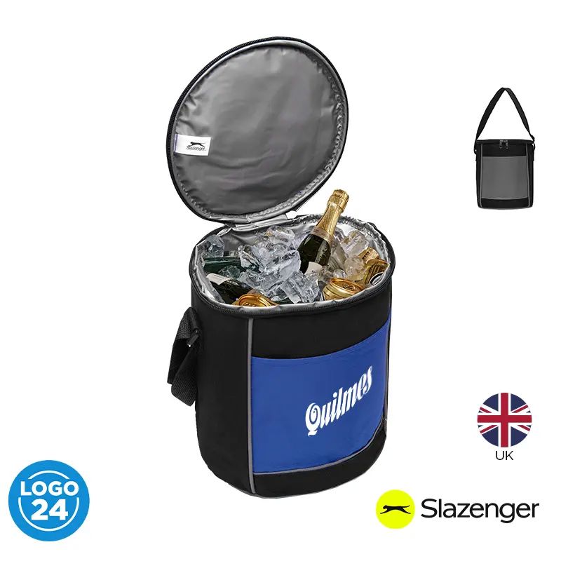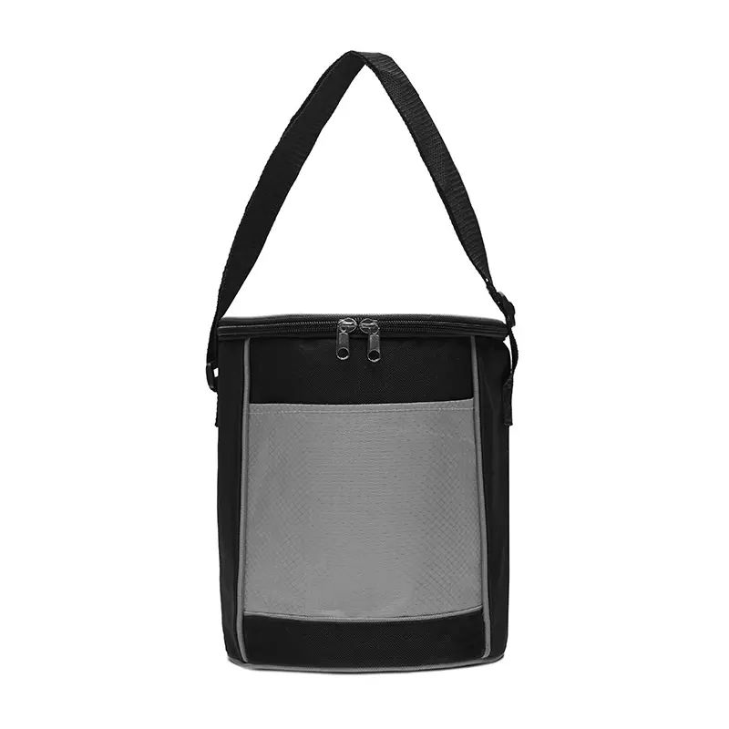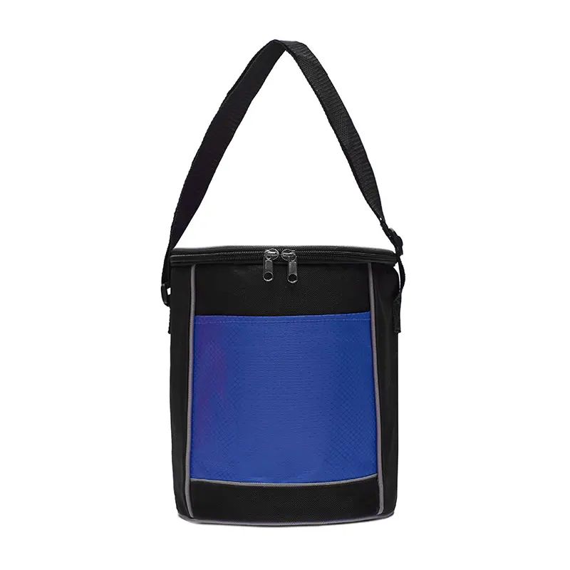 Cooler realizado en 600D y PVC. En el interior material térmico PEVA. Bolsillo ripstop. Medidas: 21,5 cm x 25,5 cm. Capacidad: 8 Lts.