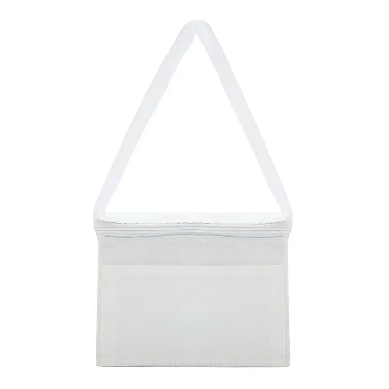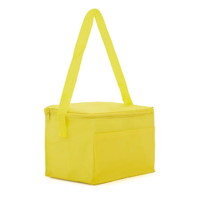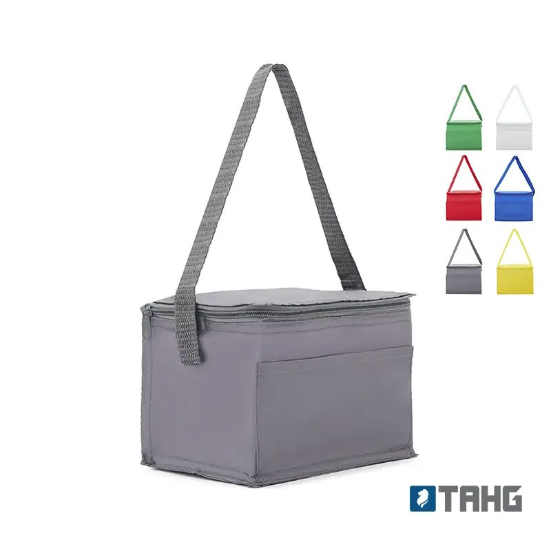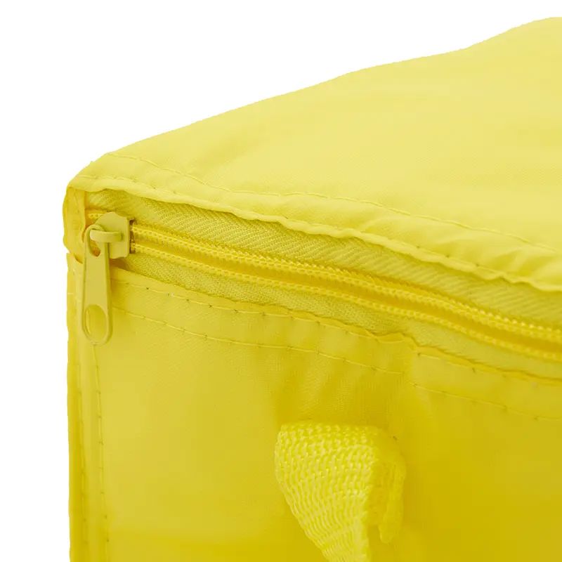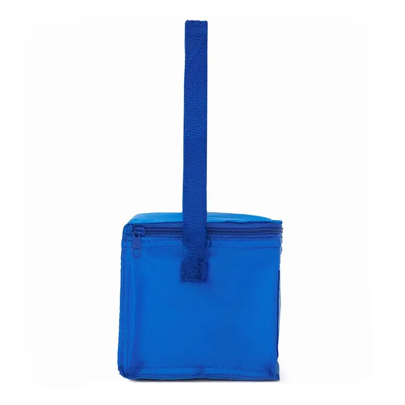 Cooler realizado en su exterior de polyester 210T y en su interior de aluminio y PE Foam 2mm. Contiene tiras para transportar, compartimiento principal superior y un bolsillo frontal. Medidas: 20,3 x 15,2 x 15,2 cm.
