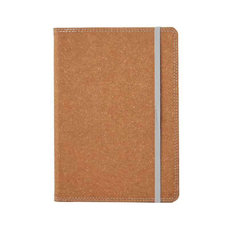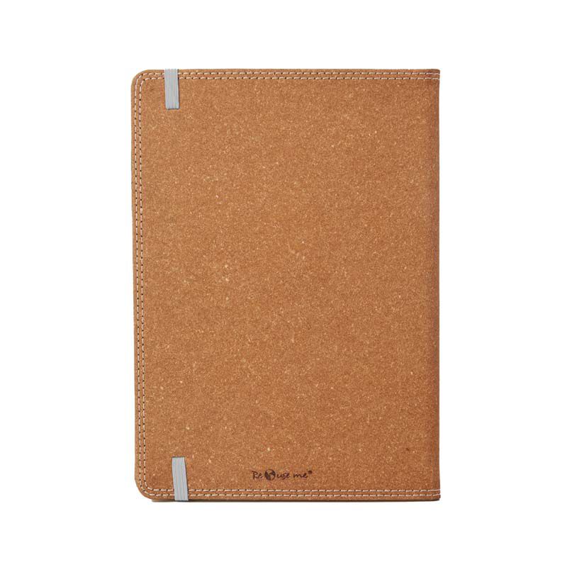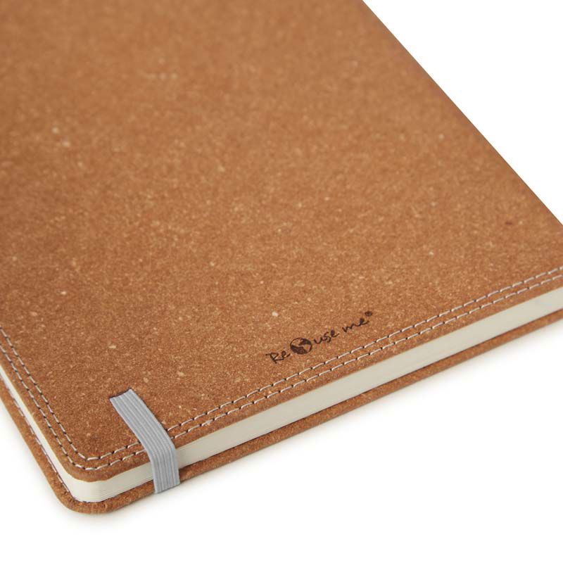 Cuaderno de tapa confeccionado en cuero reconstituido, con detalles de costuras en los bordes. Con Hojas lisas. Cuenta con un cierre elástico y una etiqueta tejida.Medidas : 14,8 x 21cm. Se presenta protegido en bolsa. 96 hojas lisas de 70g. ReUseMe.