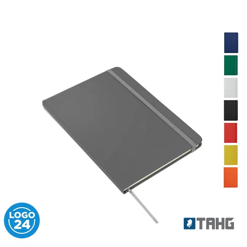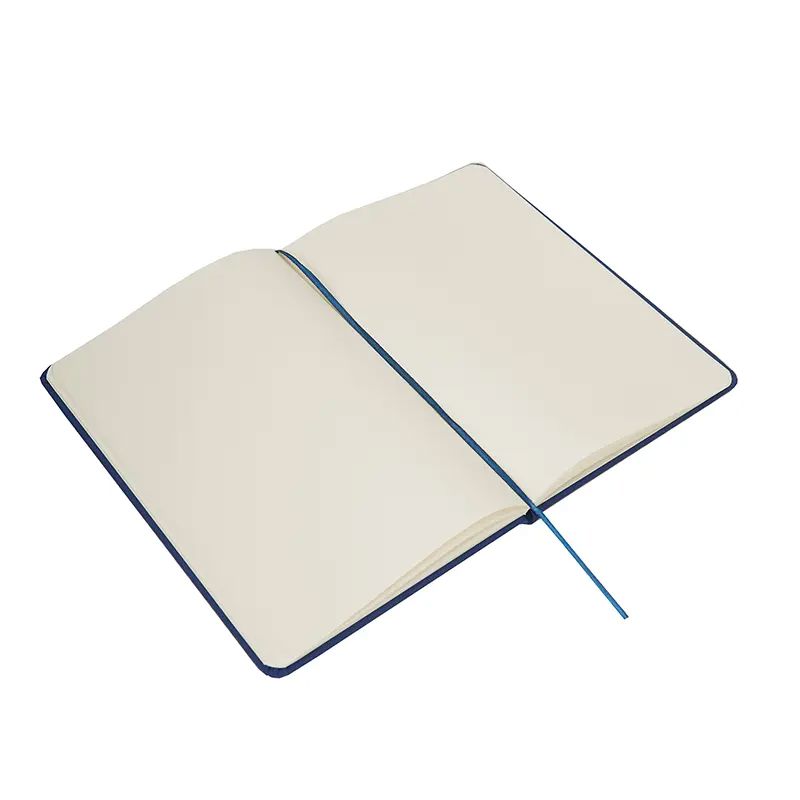 Cuaderno de tapa de dura de PU con 64 hojas lisas. Cuenta con cierre elástico y cinta marcadora. Medidas: A5 – 21 x 14.3 cm. Tahg.