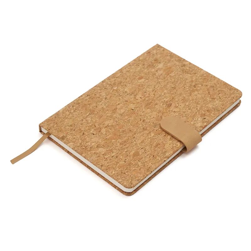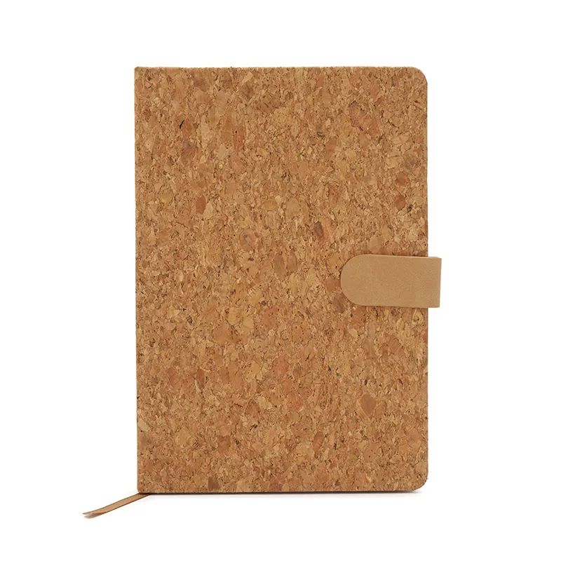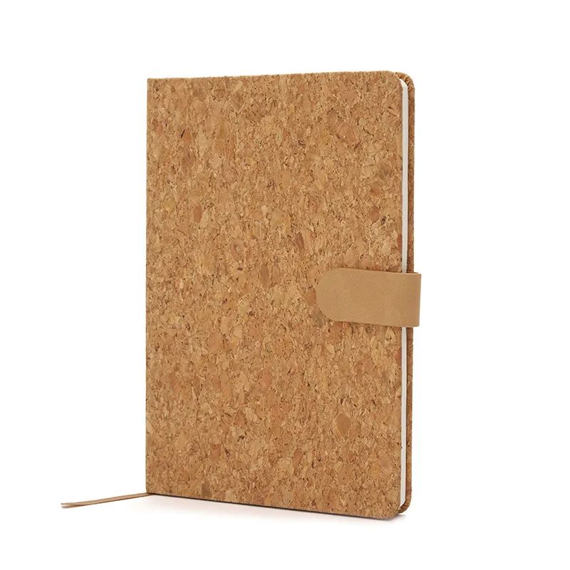 Cuaderno A5 con tapa dura hecho de corcho reciclado fabricado en corcho reciclado y cierre magnético de PU a tono cuenta con 96 hojas rayadas de papel marfil de 70 gramos cinta señaladora y diseño ecológico es ideal para tomar notas en reuniones estudios o como regalo corporativo sustentable.