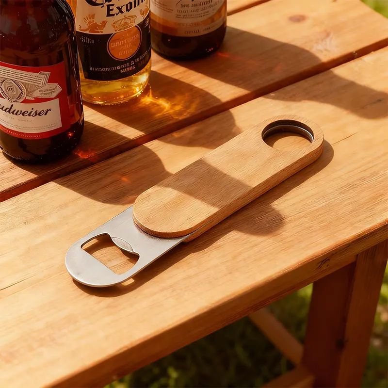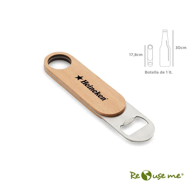 Abrebotellas fabricado en madera de haya y acero inoxidable 420SS.