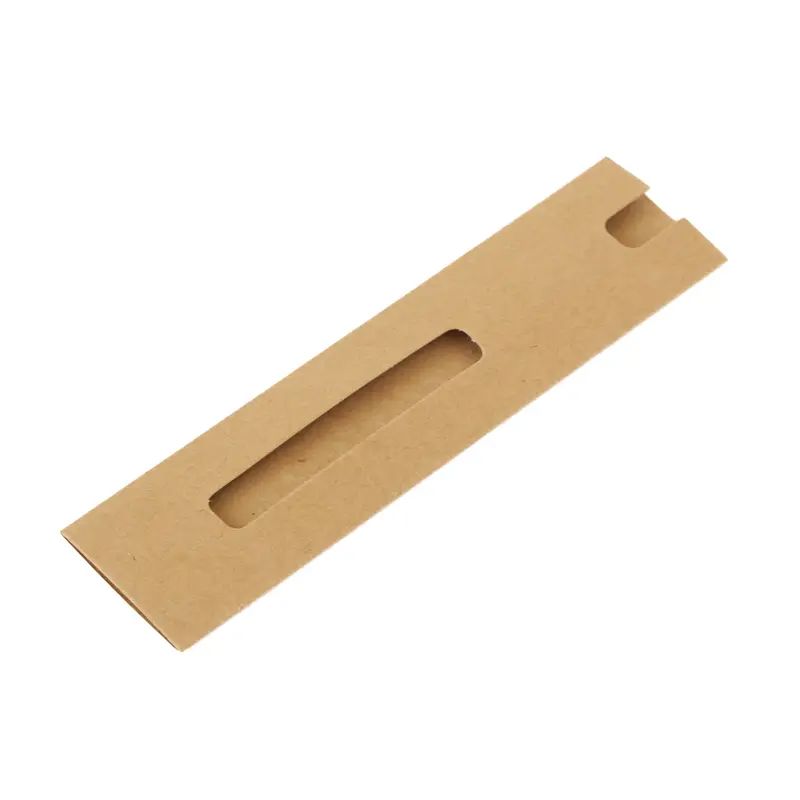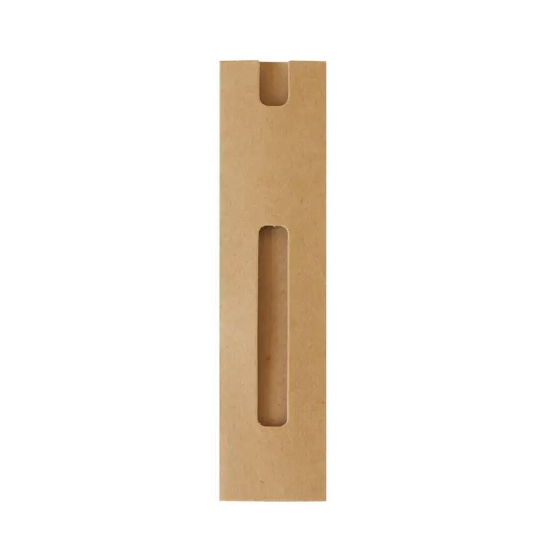Estuche para bolígrafo hecho de papel kraft natural fabricado en papel kraft reciclable cuenta con diseño minimalista y liviano ideal para presentaciones de bolígrafos en eventos corporativos ferias promociones y regalos empresariales.