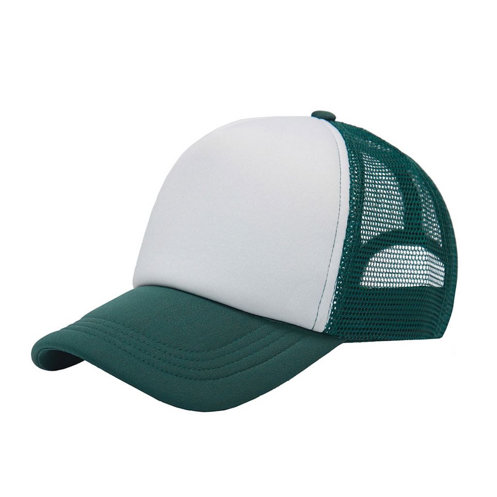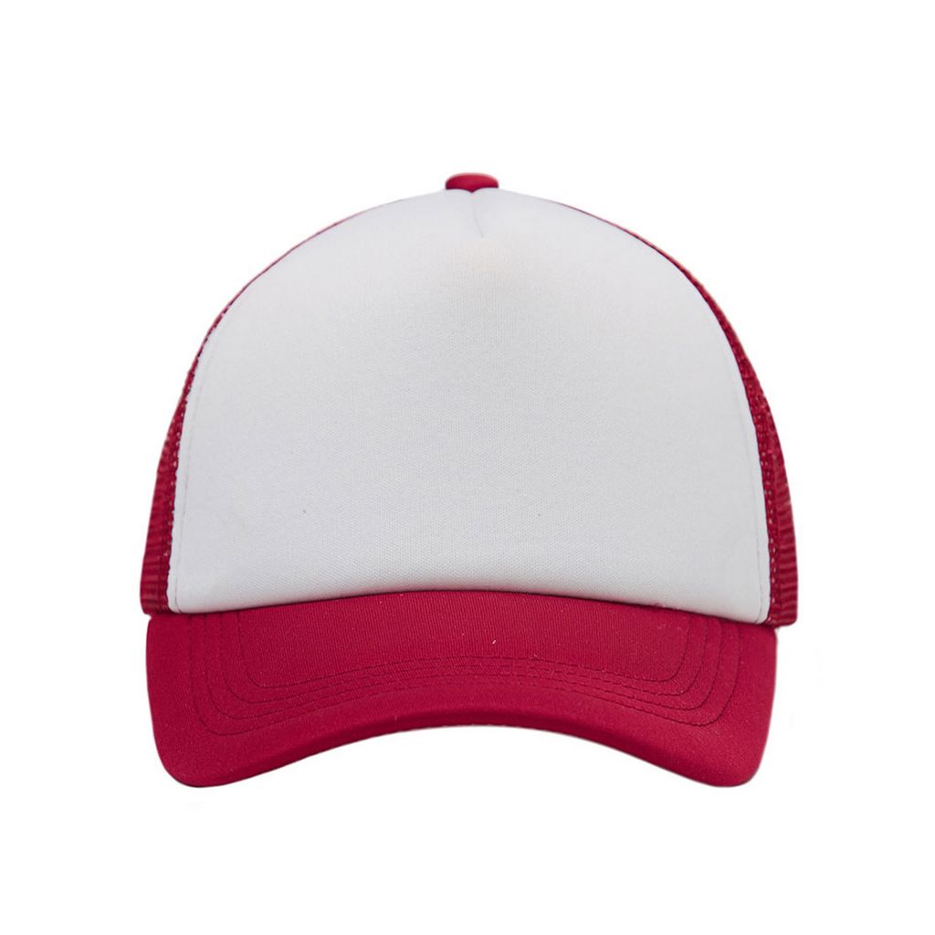 Gorro de 5 paneles en Polyester. Parte trasera con tela red de color. Ajuste con broche plástico.