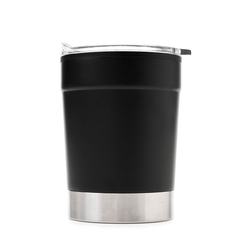 Jarro térmico realizado en acero inoxidable en su exterior, y polipropileno de color negro en su interior, con tapa transparente cristal clear con cierre.
