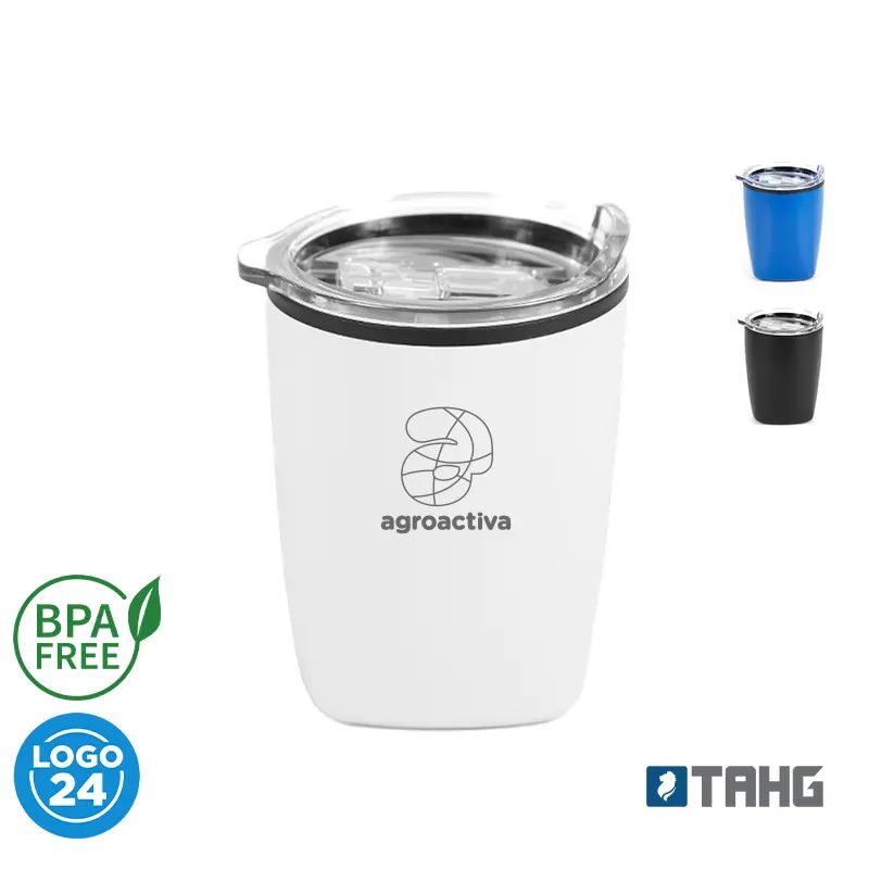 Jarro térmico realizado en acero inoxidable en su exterior, y polipropileno de color negro en su interior, con tapa transparente cristal clear con cierre y base antideslizante.