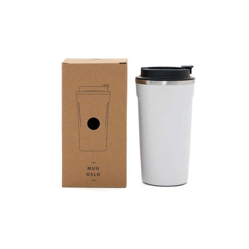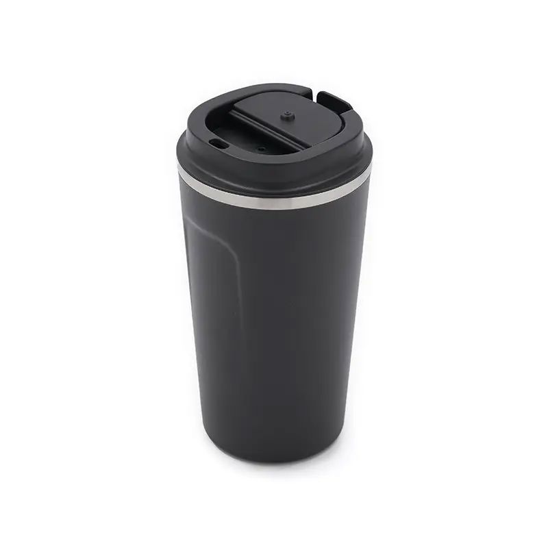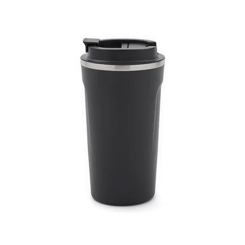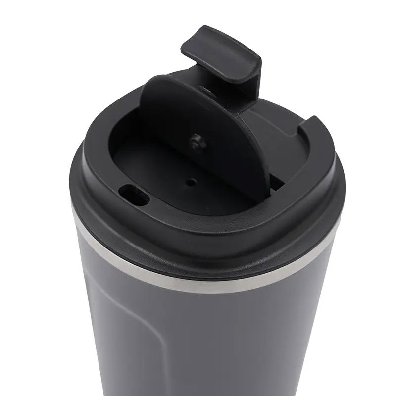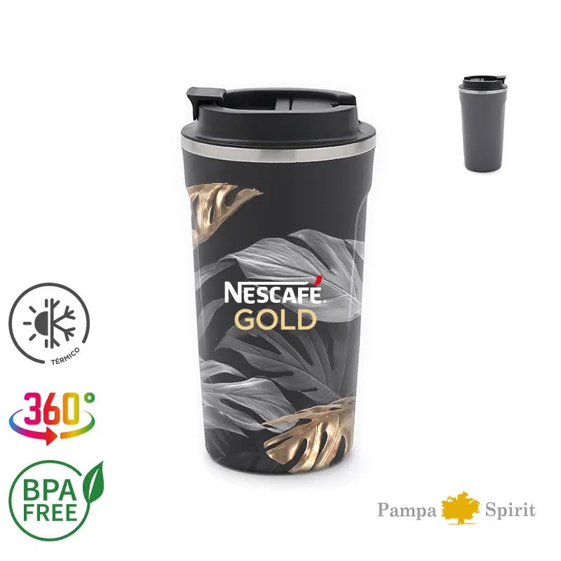 Jarro reutilizable construido en doble pared de acero inoxidable, esmaltado de color en su exterior y tapa de polipropileno antiderrame.
