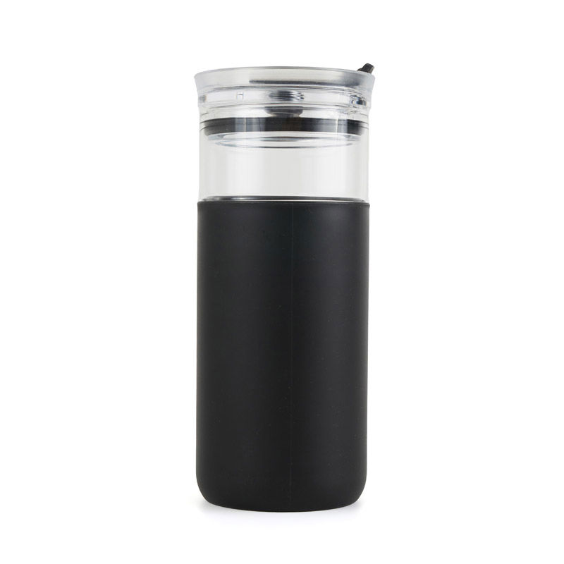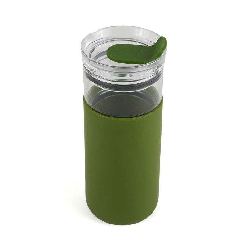 Jarro confeccionado en vidrio borosilicato + PP. Tapa con cierre a presión. Su base cuenta con una silicona antideslizante de 15,2cm de alto, que también aisla la temperatura. Capacidad: 530ml. Dimensiones: 18,5 x 7 x 7 cm. Producto libre de BPA y aprobado por el I.N.A.L. para el contacto con alimentos.