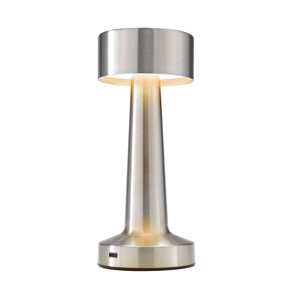 Tres modos de luz para iluminar tu espacio con estilo y versatilidad.Lámpara. Luz led. Botón táctil de encendido/apagado que regula la intensidad y cambia tres modos de luz (cálida, blanca y blanca cálida). Pintura con acabado mate (color negro) y con acabado brillante (plata y cobre). Batería de litio recargable. Conexión USB-C. Incluye cable de carga color negro.Medidas: Ø 9,5 x 21,5 cm.