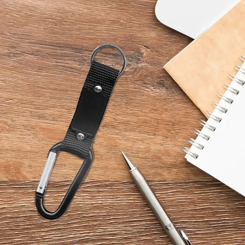 Llavero tejido de Polyester con un mosquetón de seguridad y una placa de metal para personalizar. La placa puede ser utlizada para domes o grabado láser. Medidas: 13 cm x 3,1 cm incluído el anillo (anillo de 25 mm).