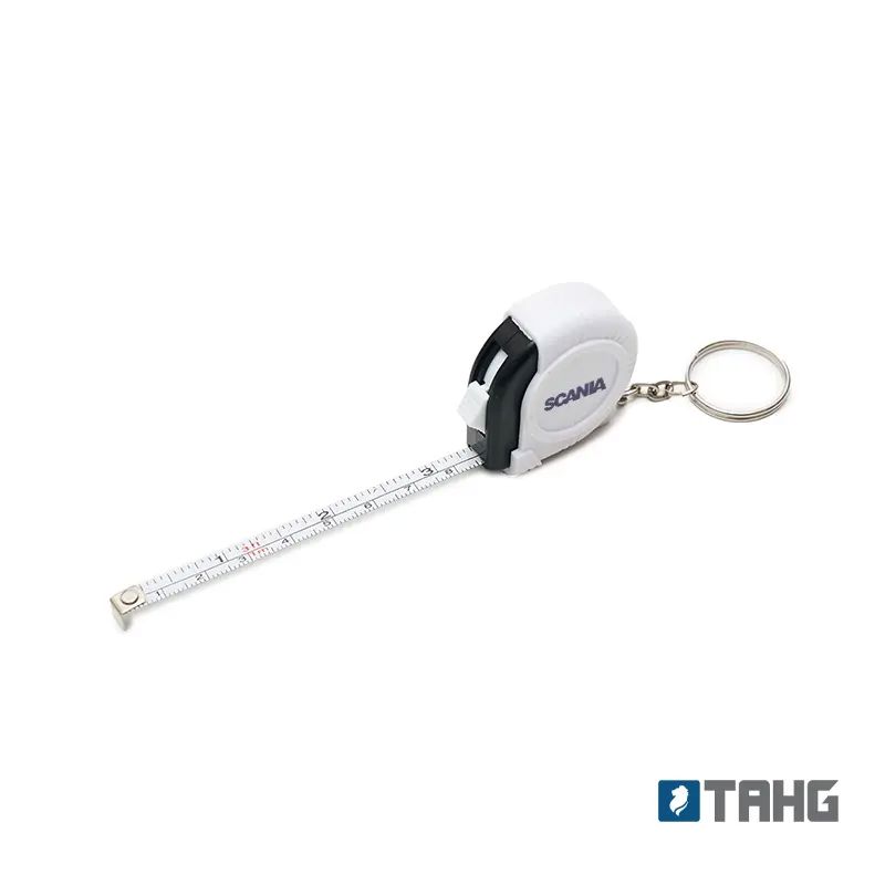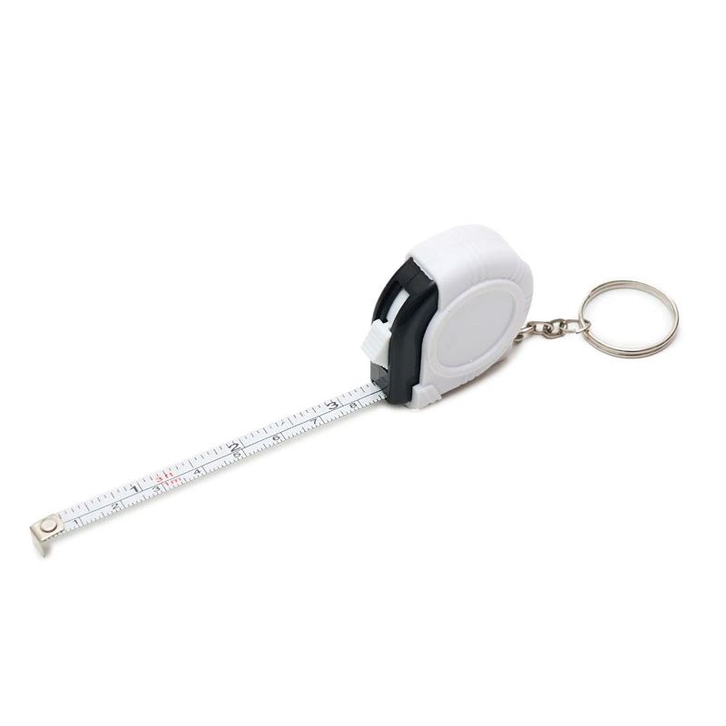 Cinta métrica retráctil con llavero fabricada en ABS y hierro. Cuenta con mecanismo retráctil de 1 metro, anillo metálico para llaves y cuerpo ergonómico. Es ideal para llevar siempre a mano en tareas de medición rápidas, reparaciones en el hogar, actividades de bricolaje o uso profesional diario.