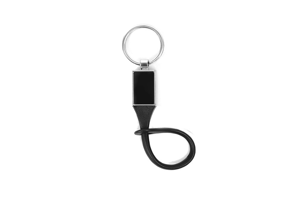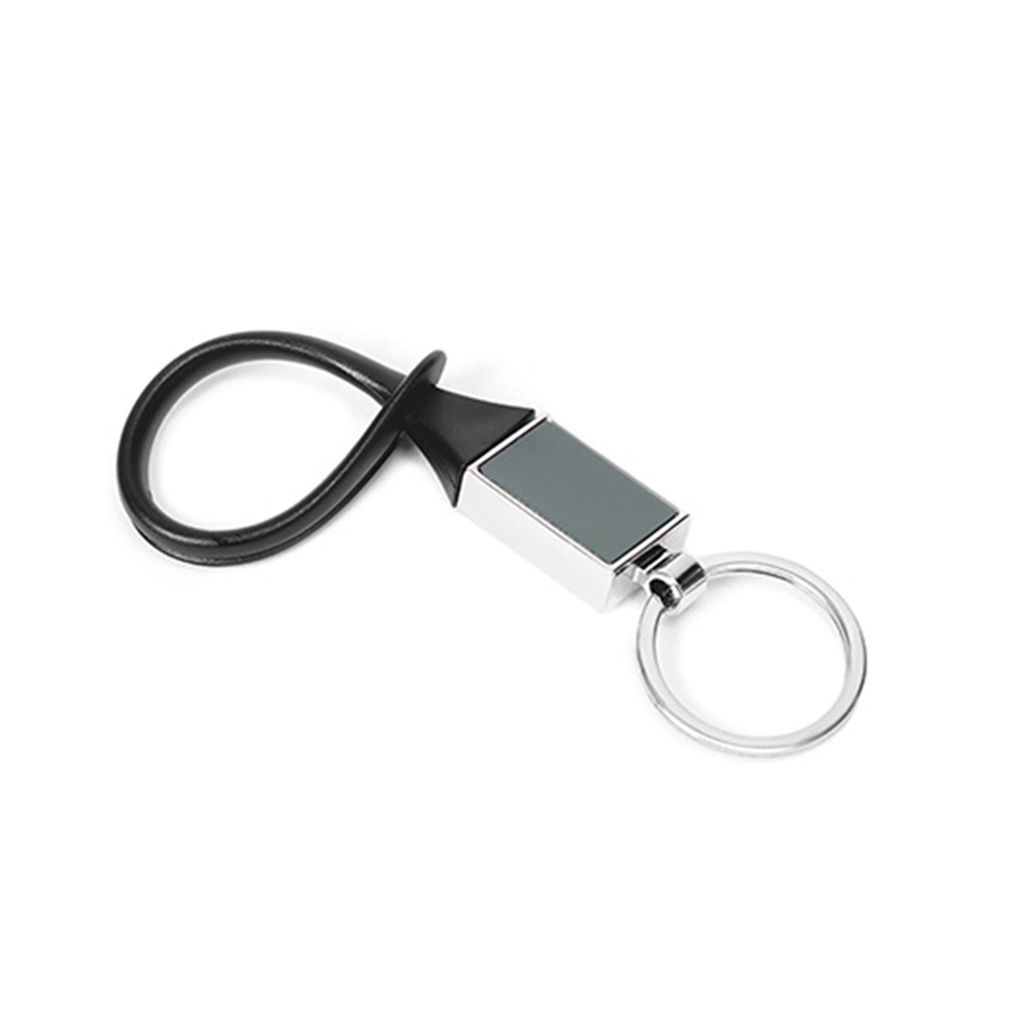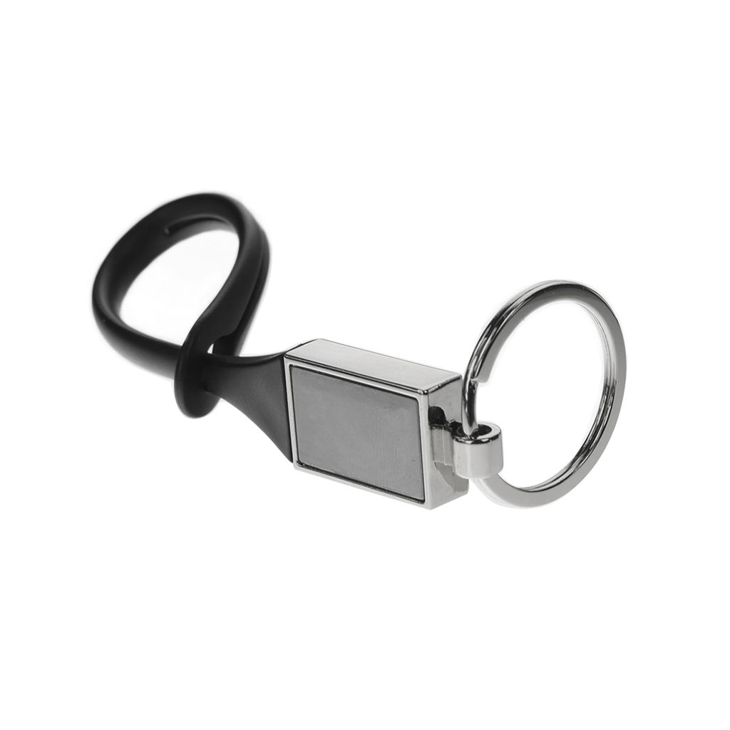 Llavero metálico con clip de goma. Rectángulo metálico de 2,5 x 1,5 cm.