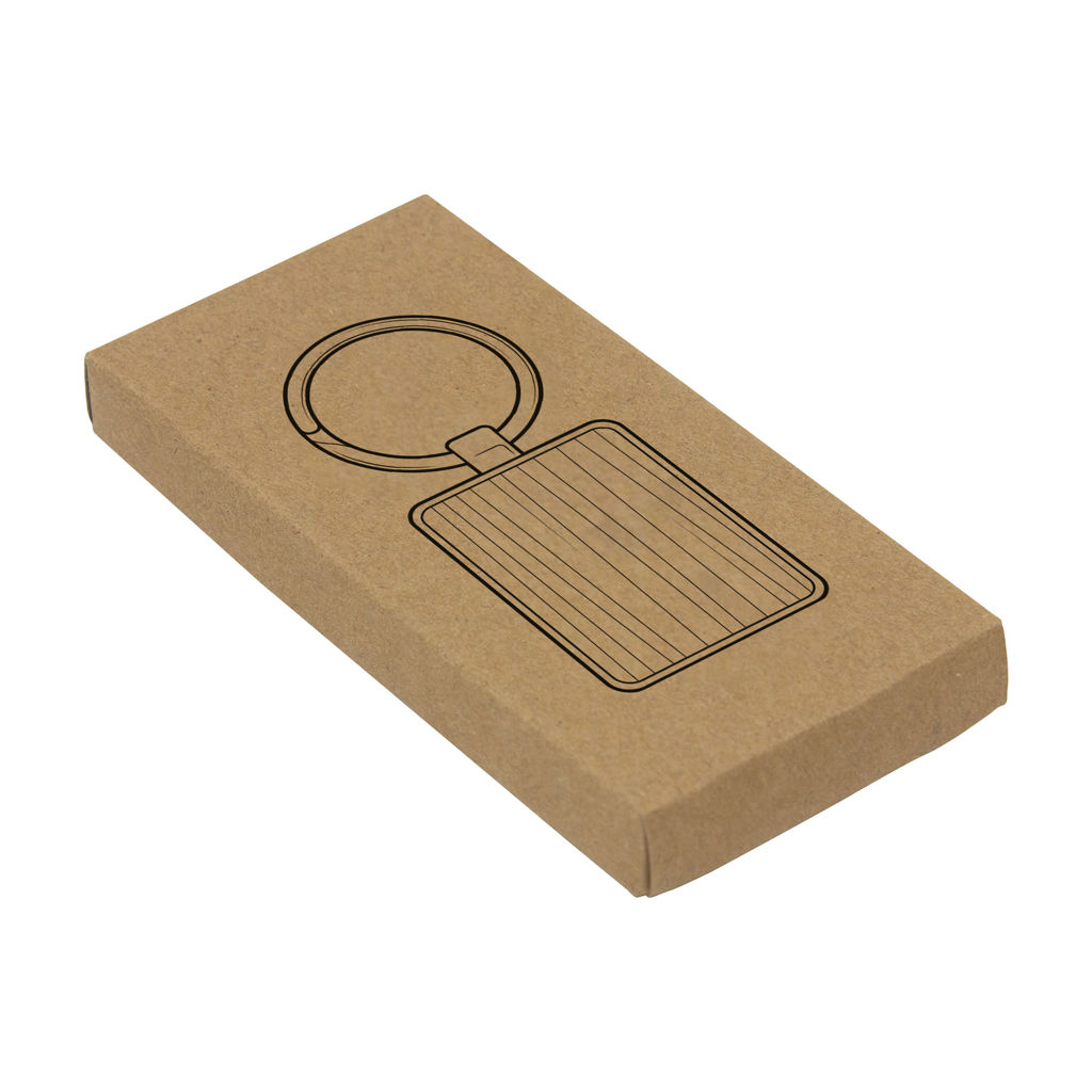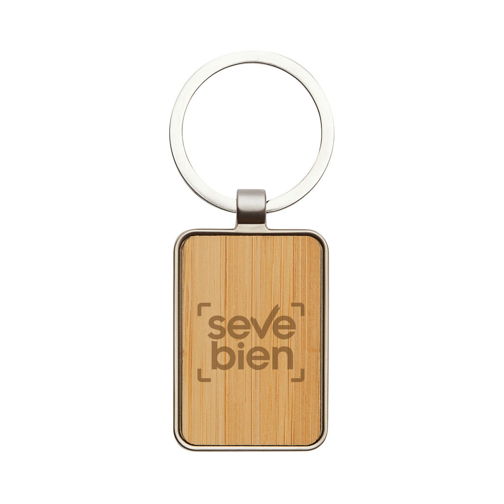 Sencillez y estilo en un diseño natural y funcionalLlavero con forma rectangular. Estructura metálica con aleación de zinc con acabado brillante y panel frontal de bambú barnizado. Medidas: 7,6 x 3,1 x 0,7 cm.