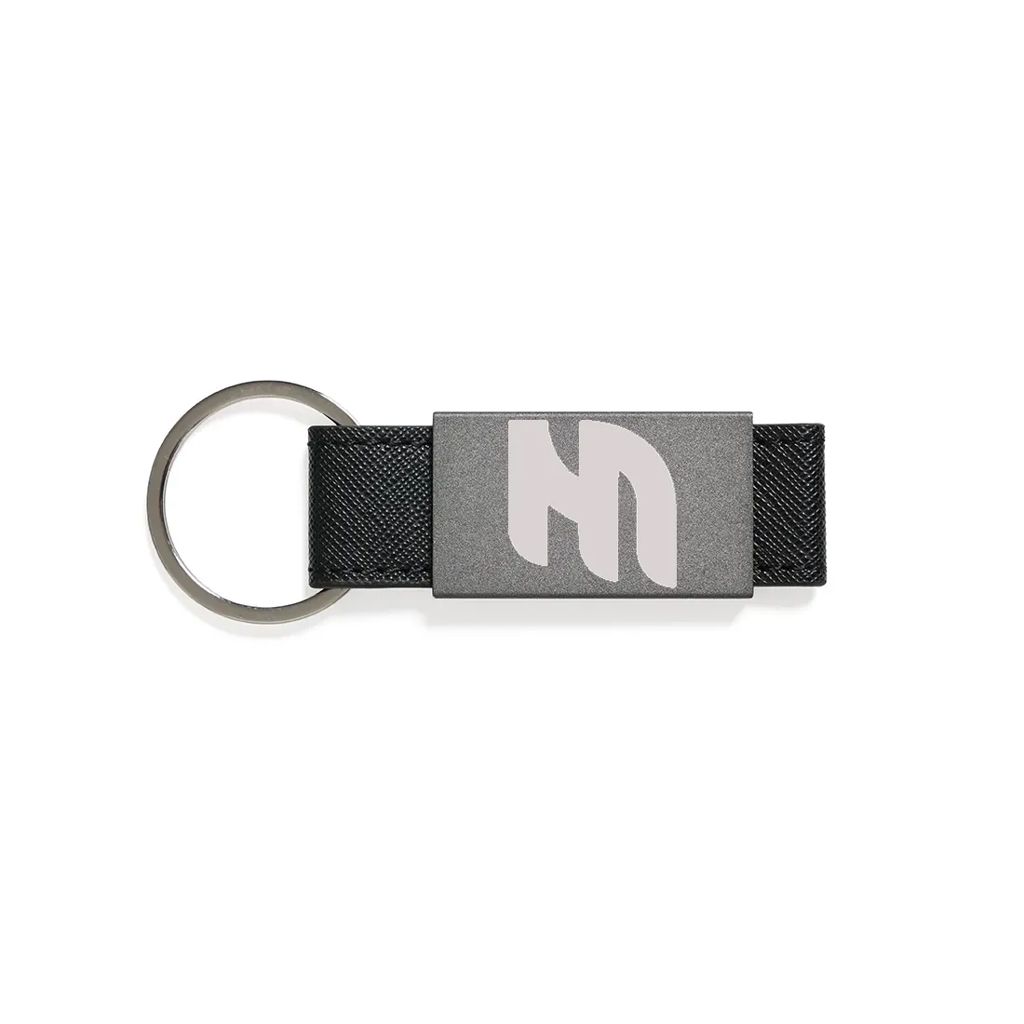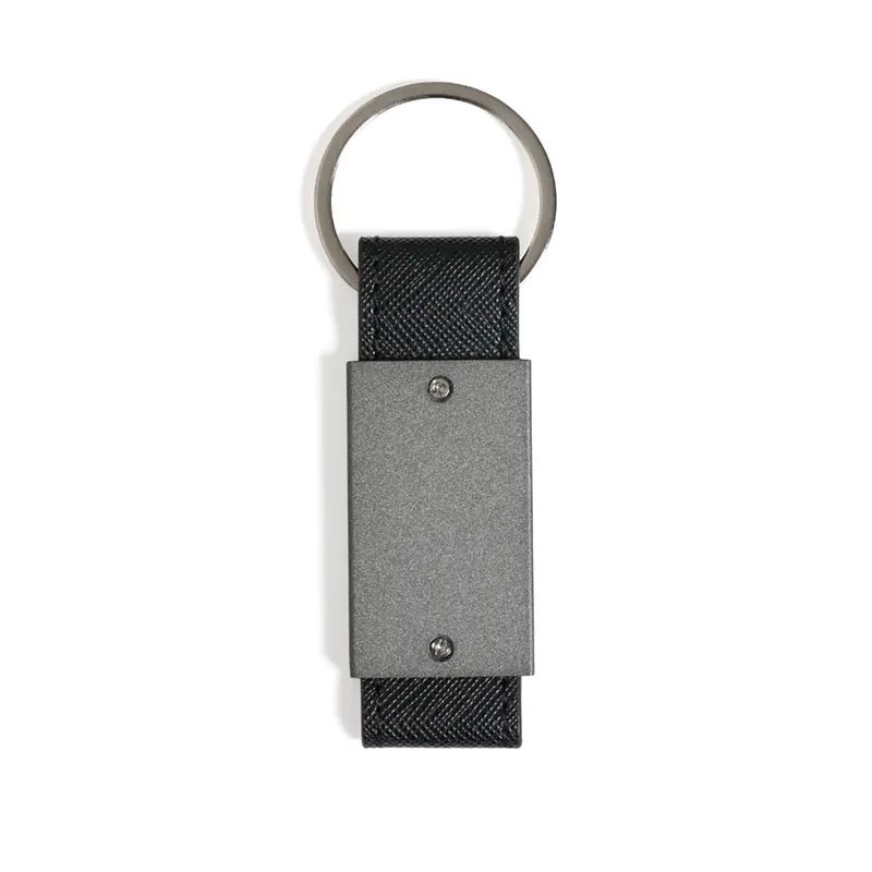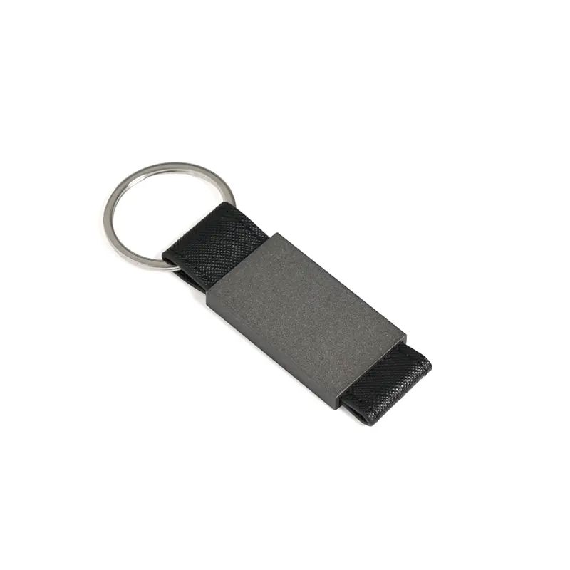 Llavero liviano fabricado en aleación de aluminio con detalles en PU y anillo de hierro. Cuenta con cuerpo metálico rectangular, cinta reforzada y anilla resistente para una sujeción segura. Es ideal para quienes buscan un llavero práctico, elegante y duradero para llevar sus llaves de forma organizada.