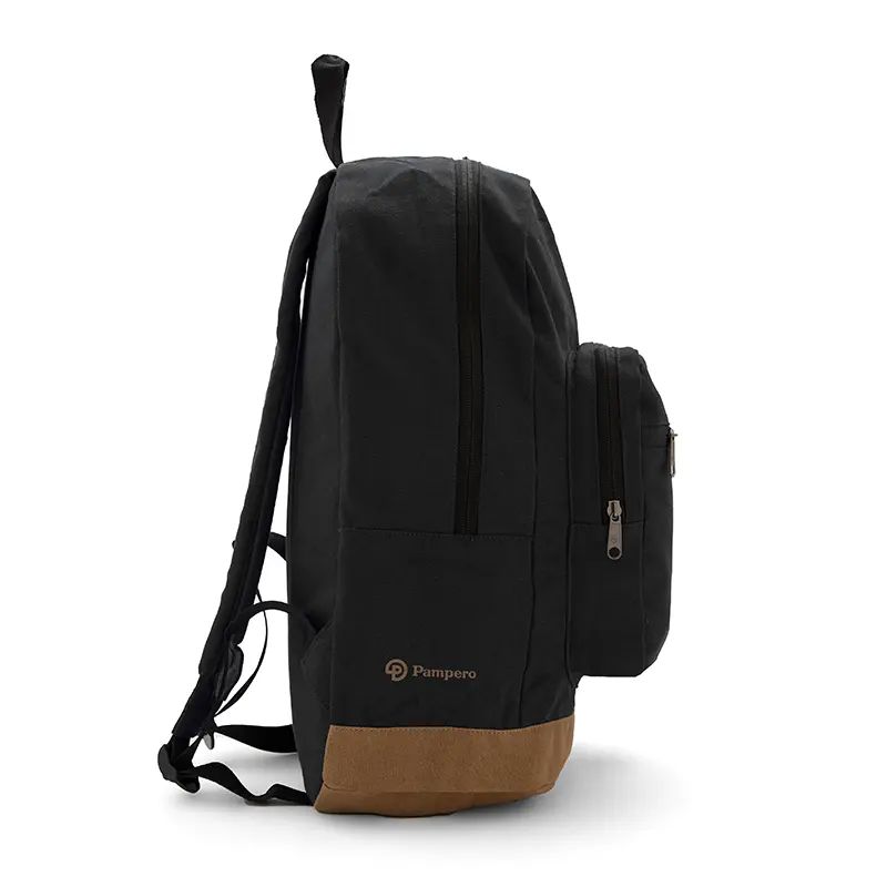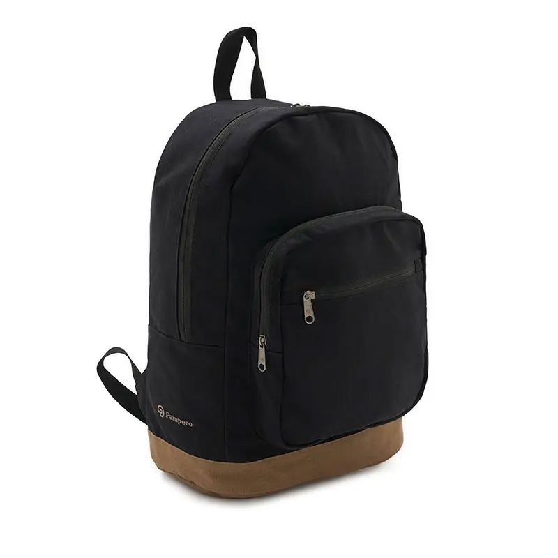 Mochila elaborada en canvas con bolsillo acolchado porta laptop. Dos bolsillos frontales con cierre, uno simple y otro con organizador interior y llavero.