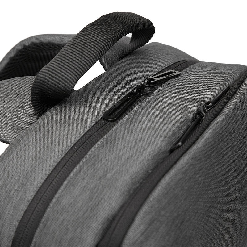Mochila realizada en Poliester, con respaldo y correas acolchadas. Cuenta con dos compartimientos principales con cierre, uno de ellos completamente acolchado para notebook. Bolsillo secundario en el frente y dos bolsillos laterales para pequeños objetos. Dimensiones: 43 x 29 x 9.5 cm. Capacidad: 11 Lts. Notebook: 15,6″.