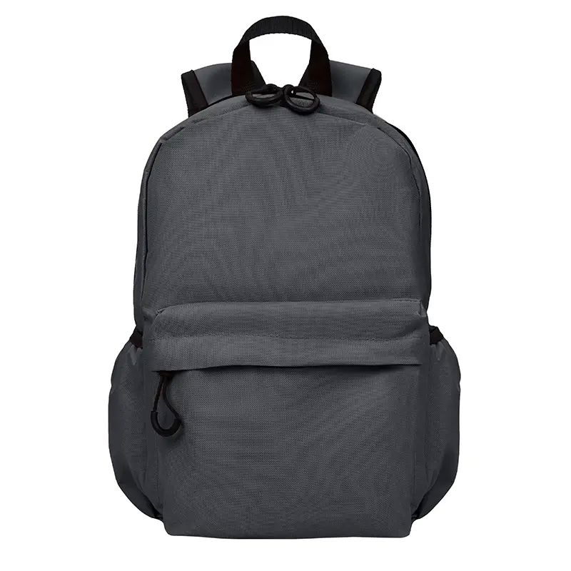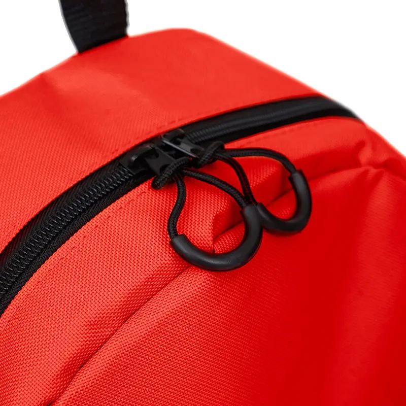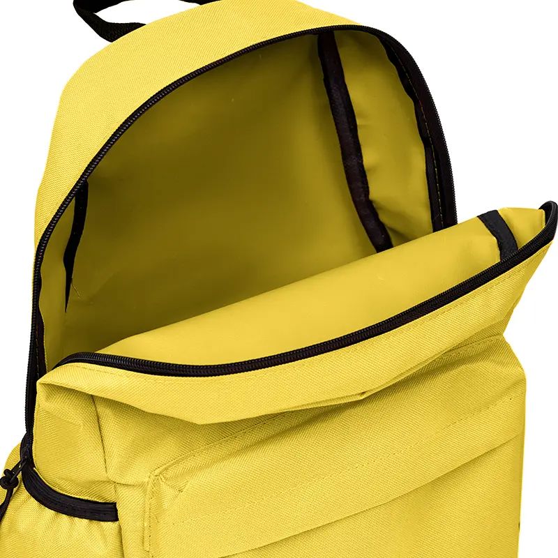 Mochila confeccionada en Polyester, con bolsillo frontal con cierre y 2 bolsillos laterales elásticos . Medidas: 42 cm alto | 27cm ancho | 12cm profundidad. Capacidad 13.5 Lts. Tahg.