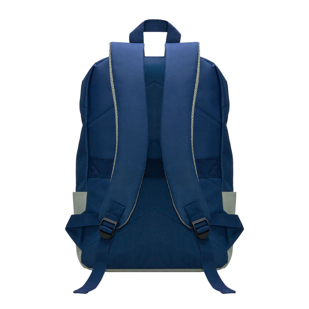 42 x 28 x 10 cm. Capacidad 11 litros. Poliéster 600D. Mochila urbana porta notebook de hasta 15 pulgadas. Bolsillo frontal con cierre horizontal y dos bolsillos laterales. Compartimento principal con bolsillo acolchado para proteger la notebook. Correas ajustables y espalda acolchada. Tiradores de cierres plásticos.