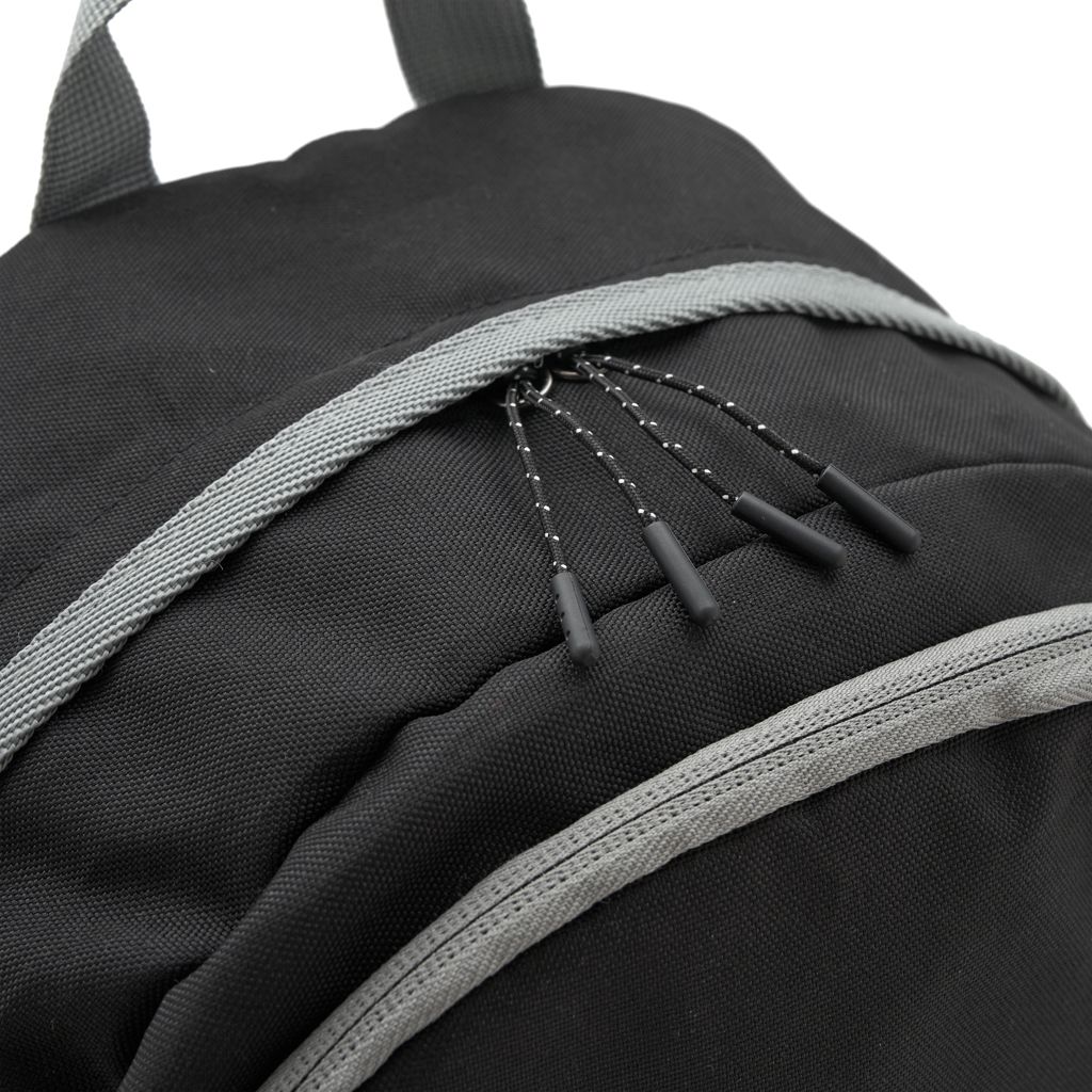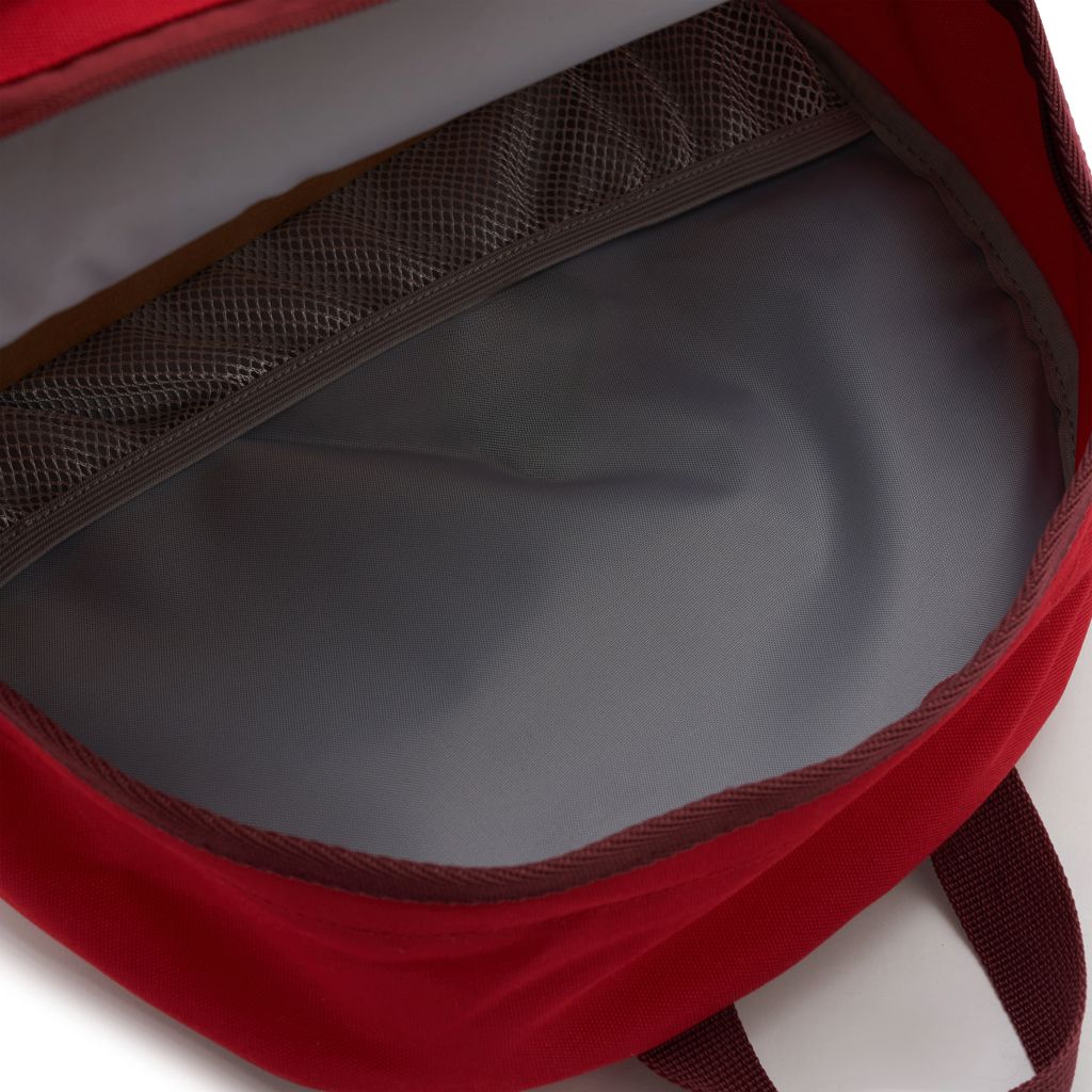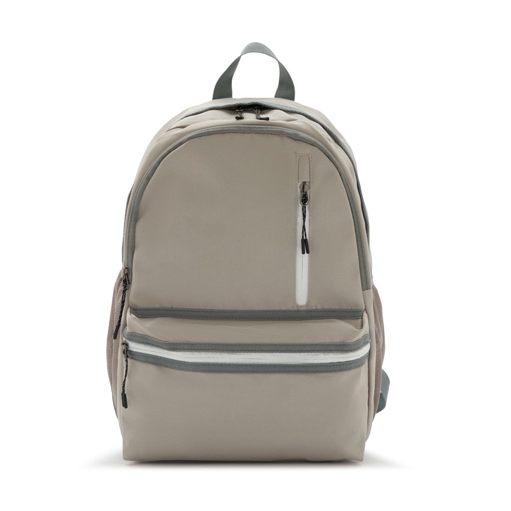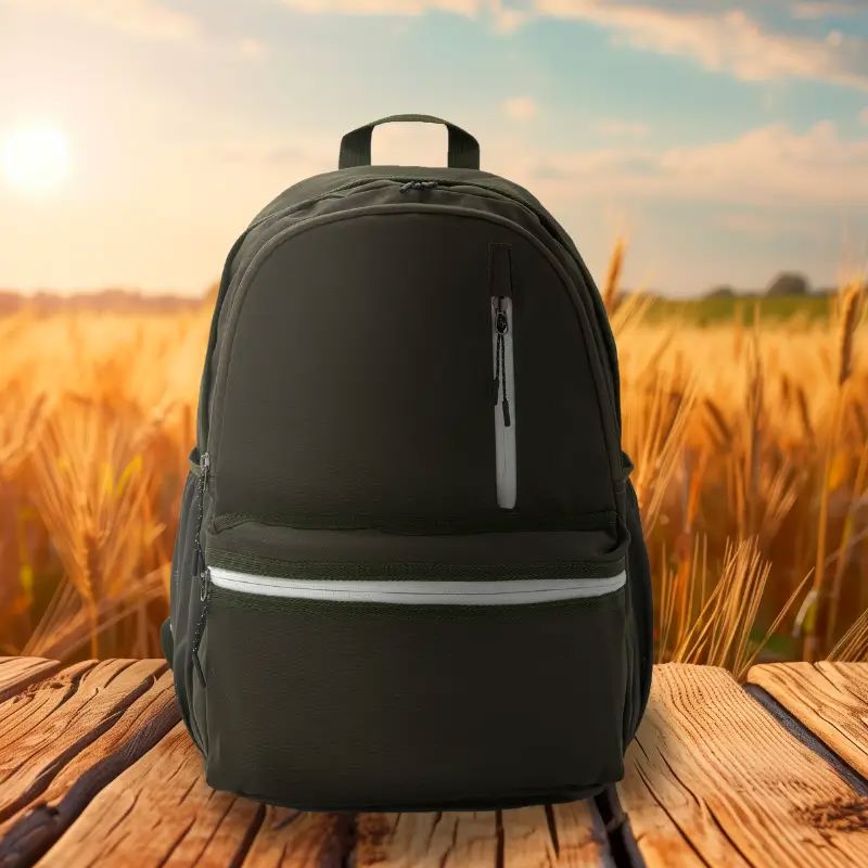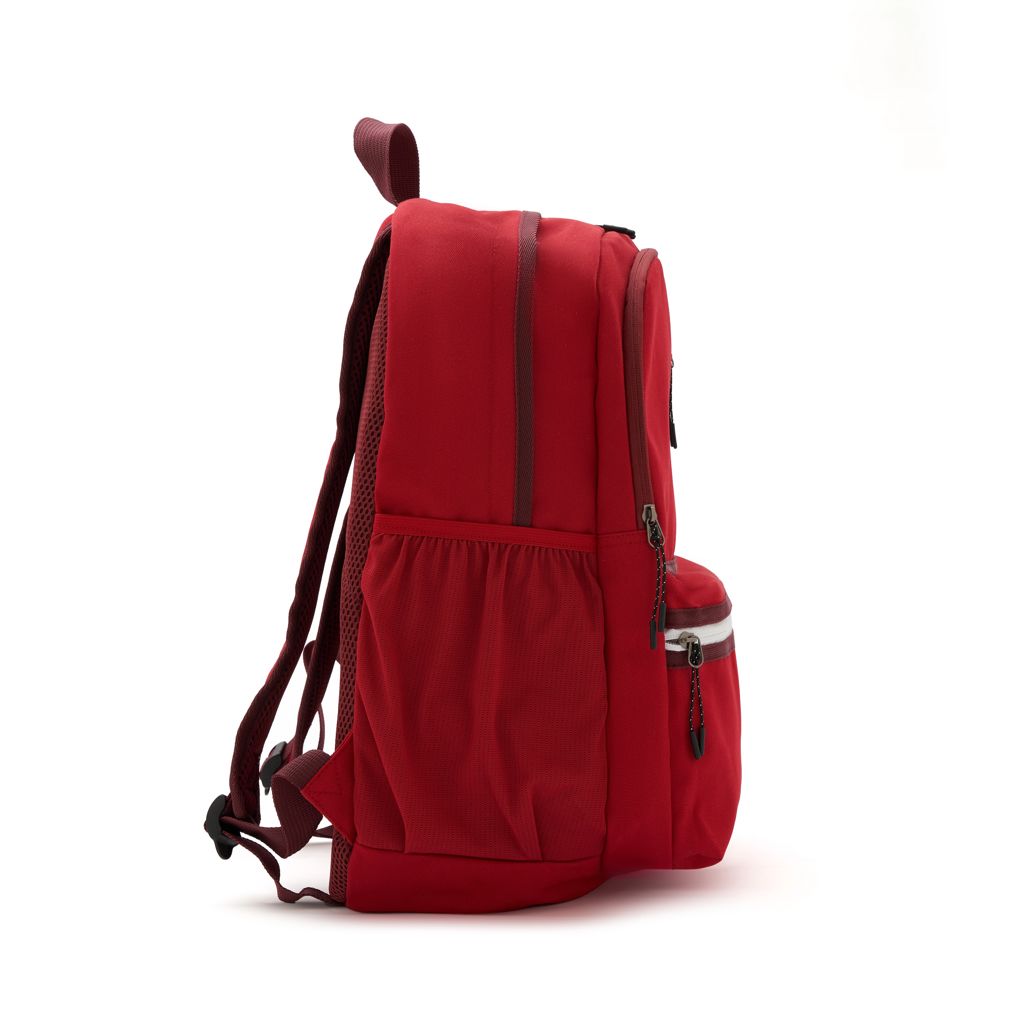 Mochila fabricada en poliéster 100% 600D, con forro completo. Cuenta con dos compartimentos principales, un bolsillo frontal con cierre vertical en la parte superior, y un bolsillo horizontal en la parte inferior. También tiene dos bolsillos laterales de malla, porta botellas. Capaz de llevar una notebook de hasta 15,6″. Ideal para quienes buscan una mochila con amplio espacio de almacenamiento y compartimentos organizadores, para llevar al trabajo y universidad.