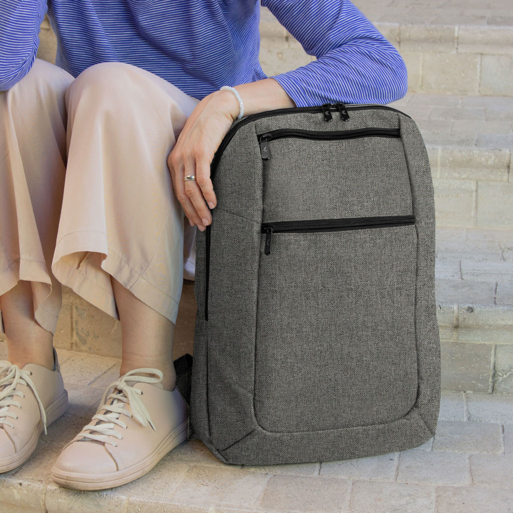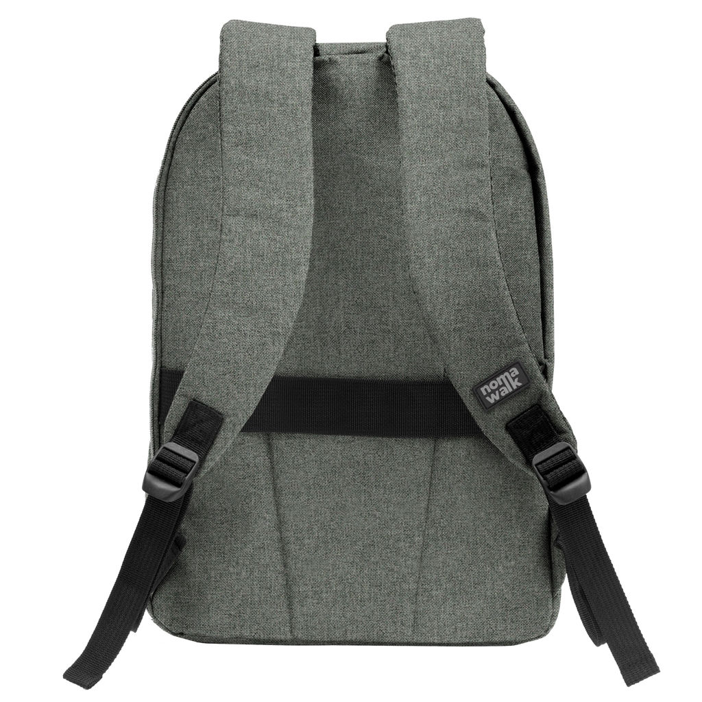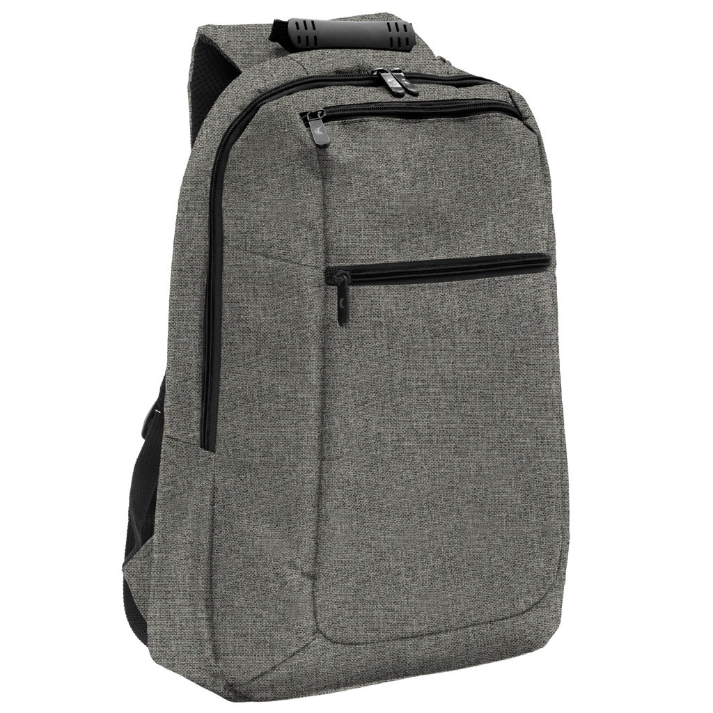 30 x 43 x 12 cm. Capacidad 14 litros. Poliéster 600D, interior poliéster 210D. Mochila portanotebook de 14 pulgadas. Compartimento lateral portanotebook, compartimento principal y 2 bolsillos frontales horizontales. Manija con refuerzo engomado, correas acolchadas, hebillas plásticas y cierres metálicos. Espalda acolchada. Tira para sujetar la mochila en la manija extensible de un equipaje de mano.